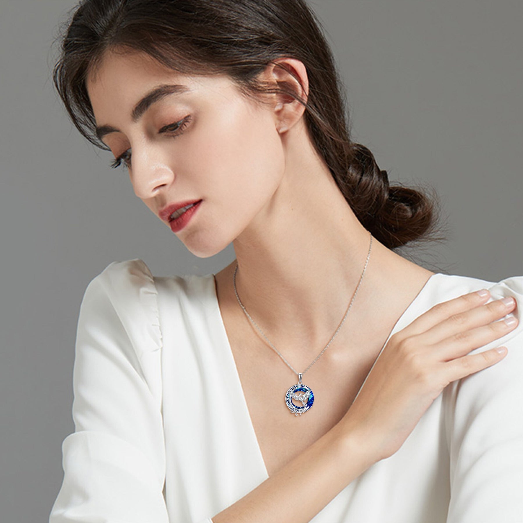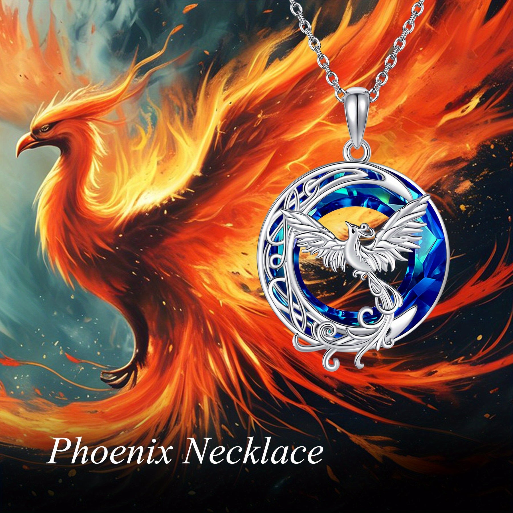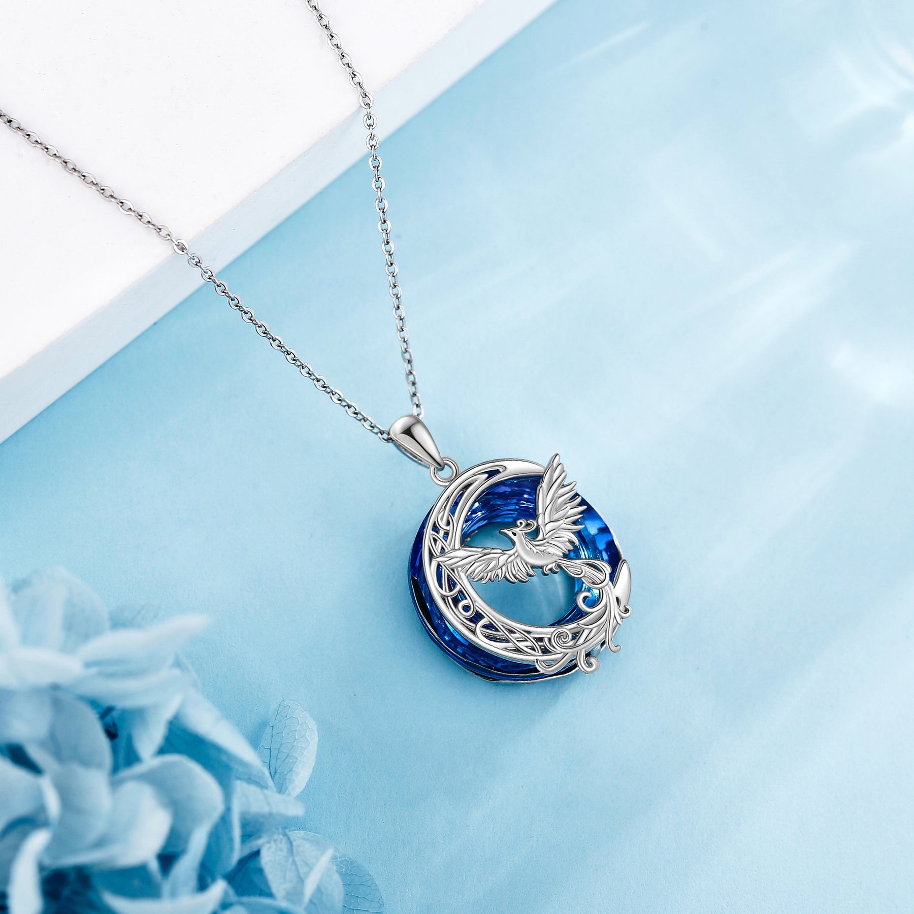 This stunning necklace features a beautiful crystal phoenix and crescent moon design. Made of high-quality 925 sterling silver, it is a perfect jewelry piece for women, girls, and moms.