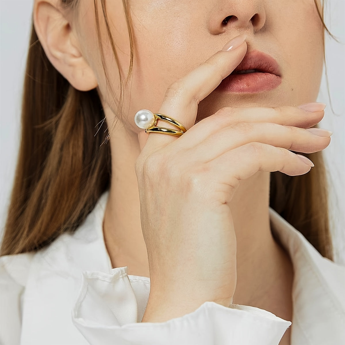 Cuff Ring Wide Double Layer Band Waterish Pearl Dainty Party Accessory