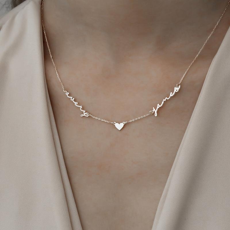 This personalized necklace features two names on a heart-shaped pendant, perfect for gifting on Christmas or Mother's Day. Made of high-quality 18K golden plated stainless steel, this minimalist jewelry piece is a unique and thoughtful gift.