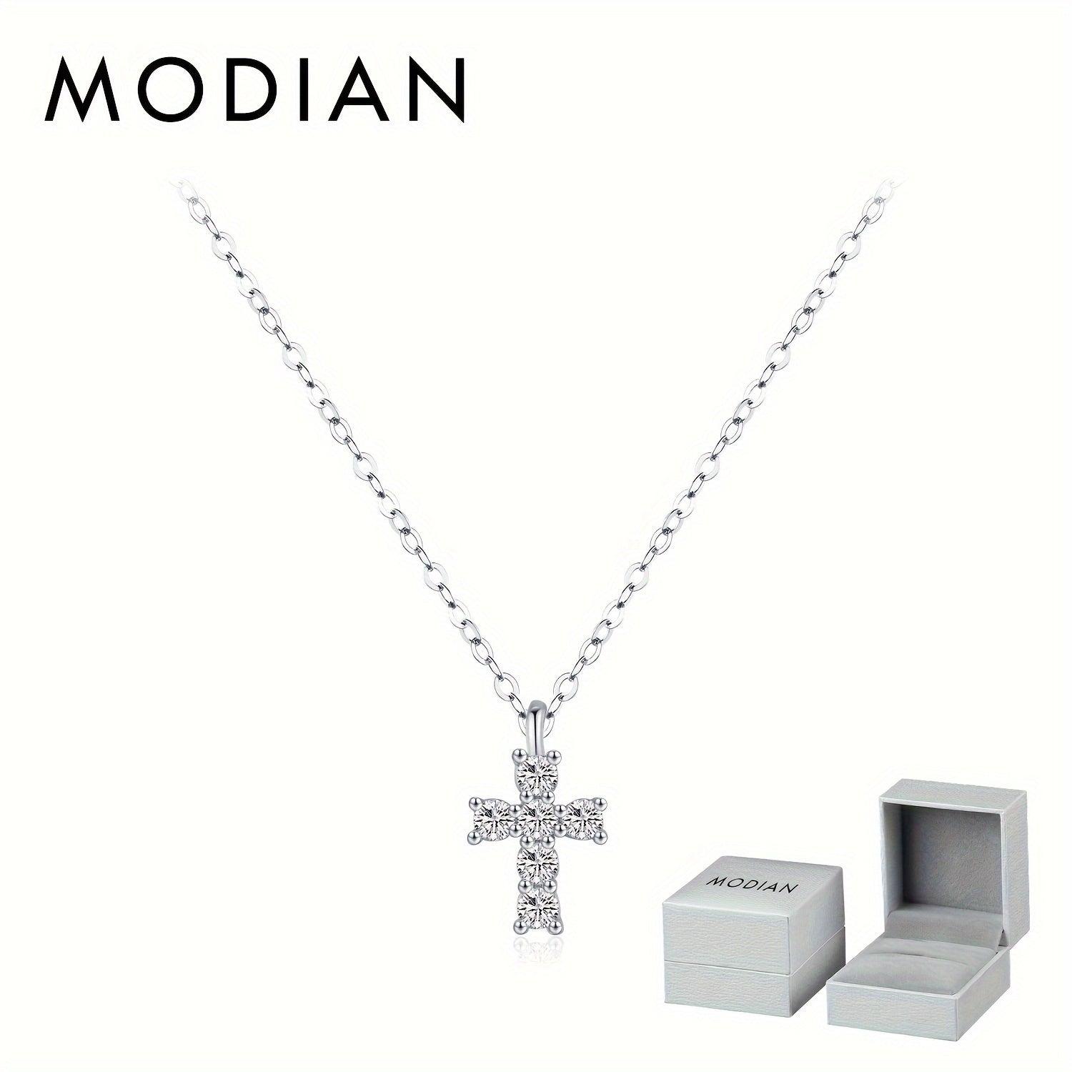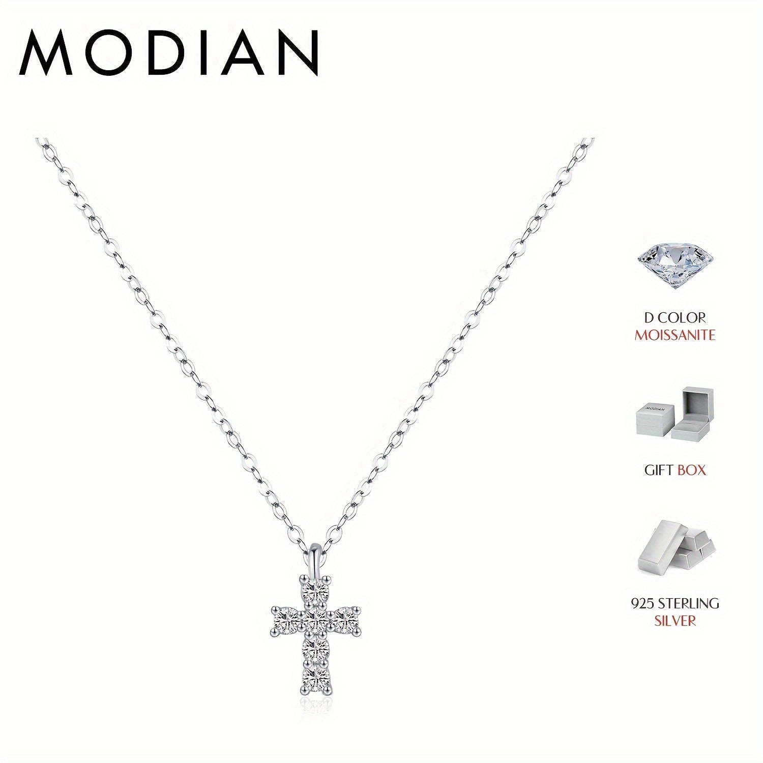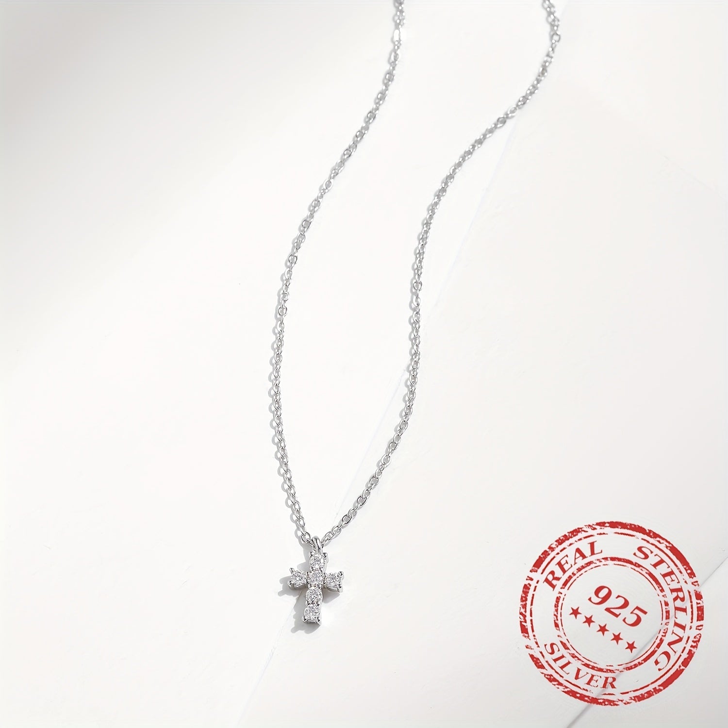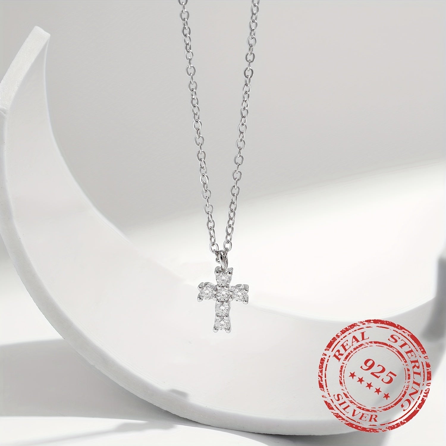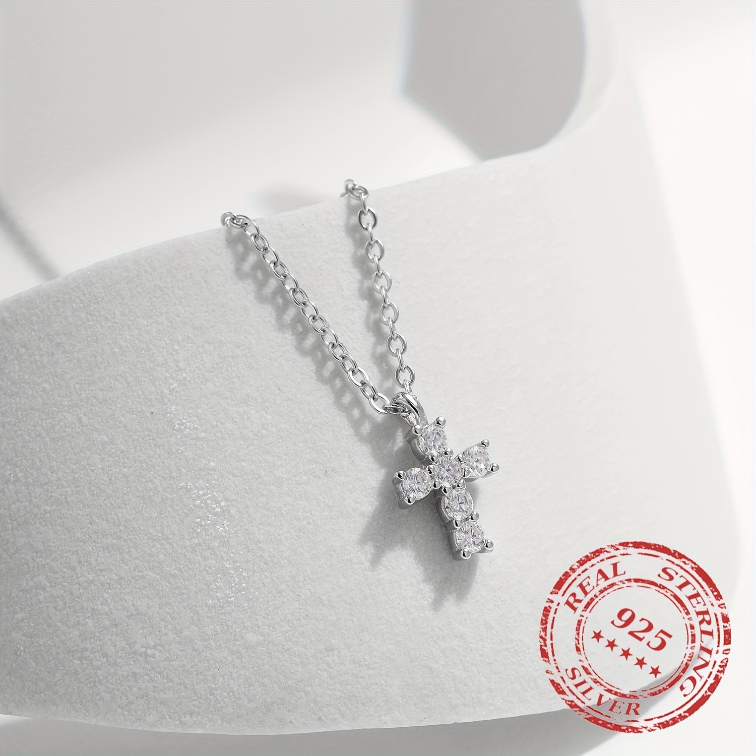 Elegant cross pendant necklace crafted with dazzling D VVS1 Moissanite stones in 925 sterling silver. Perfect for women who love sparkling jewelry.