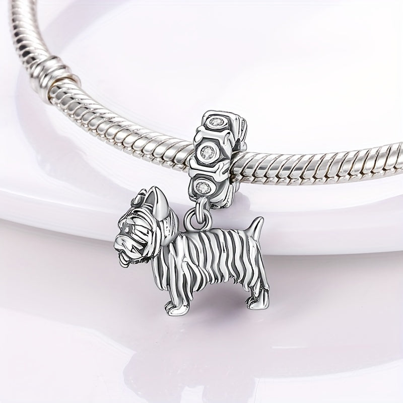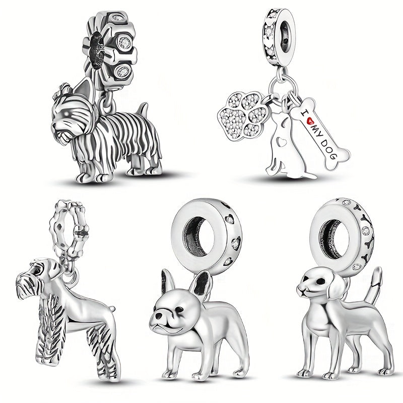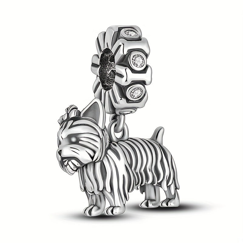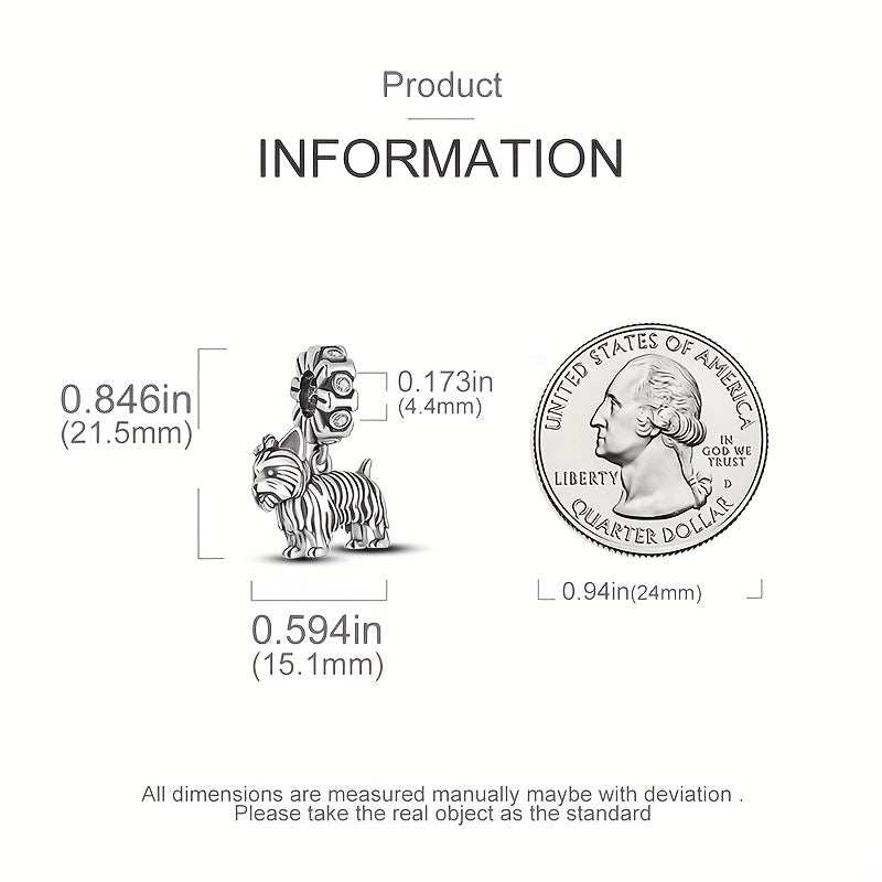 Add a touch of cuteness to your DIY jewelry with this silver plated dog-shaped charm pendant. Inlaid with zircon for a touch of sparkle.