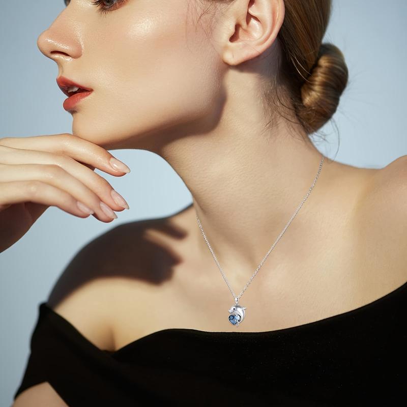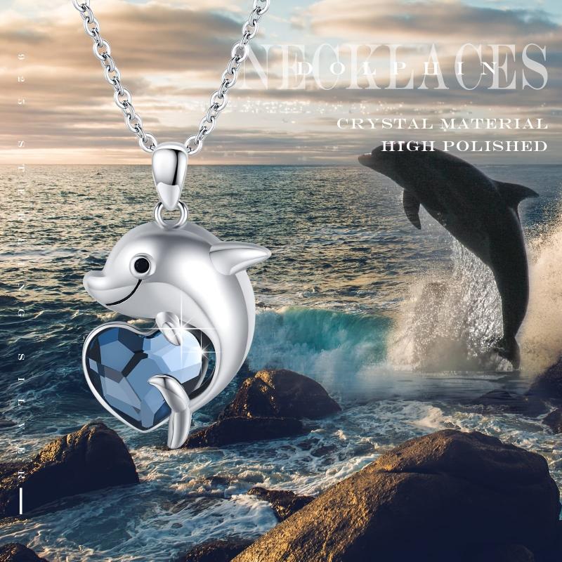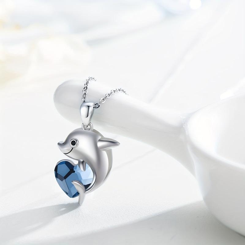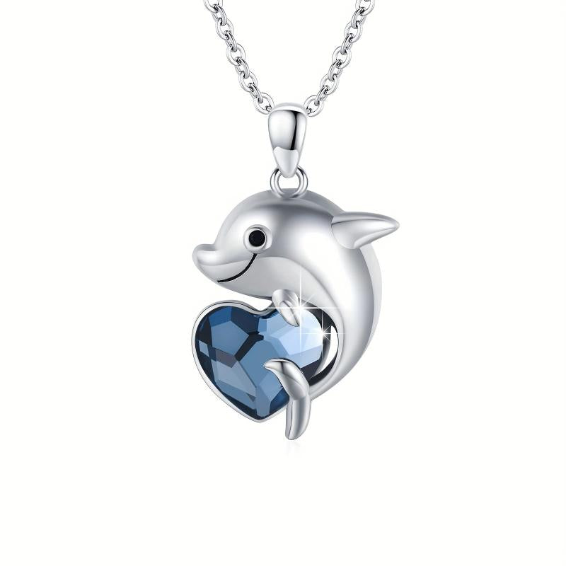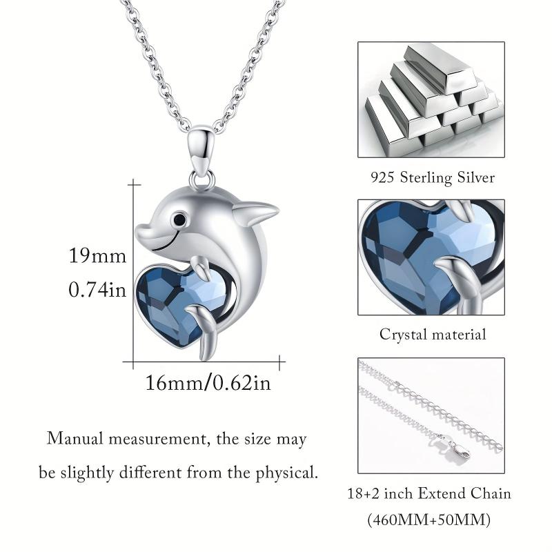 This stunning dolphin necklace is made of 925 sterling silver with artificial crystals, featuring a beautiful dolphin pendant and heart chain. Perfect gift for women and mothers.