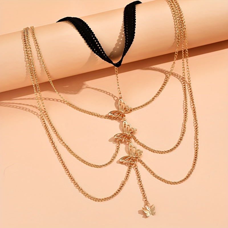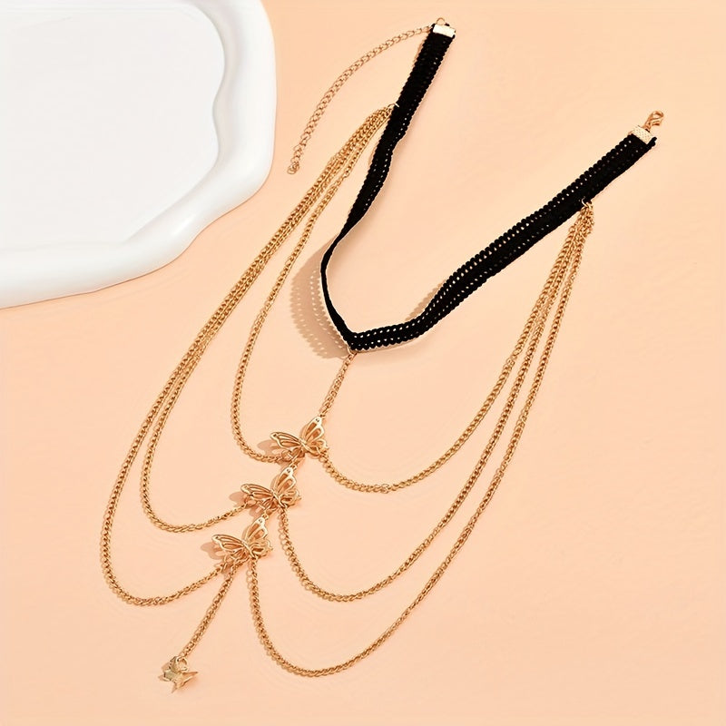 Add a touch of elegance with this creative leg chain featuring a butterfly design, made with elastic material for a comfortable fit.