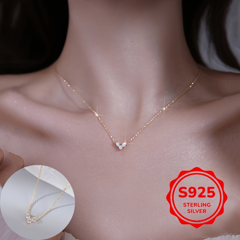 Stylish and minimalist S925 silver necklace with synthetic zirconia heart design. Ideal for everyday wear and makes a great holiday gift.