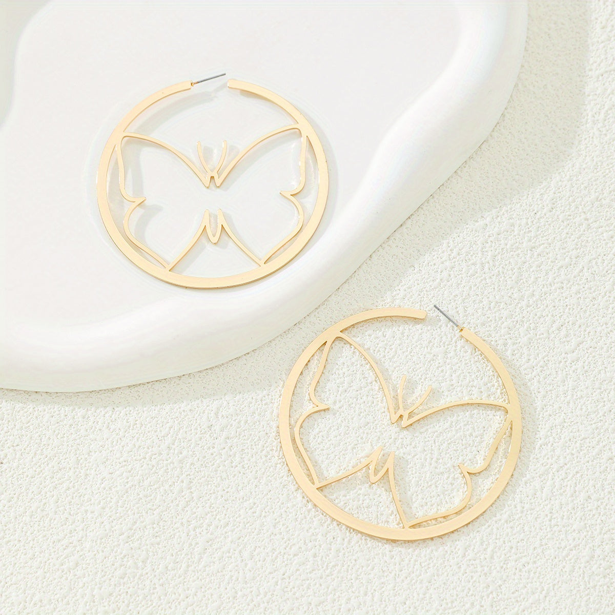 Add a touch of glamour to your look with these hollow golden butterfly hoop earrings. Perfect for stage performances or to elevate your everyday style.