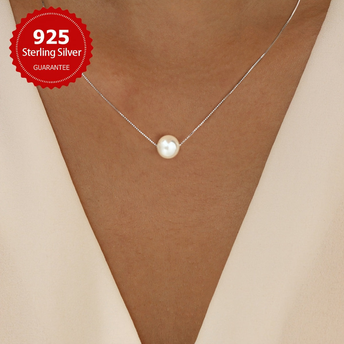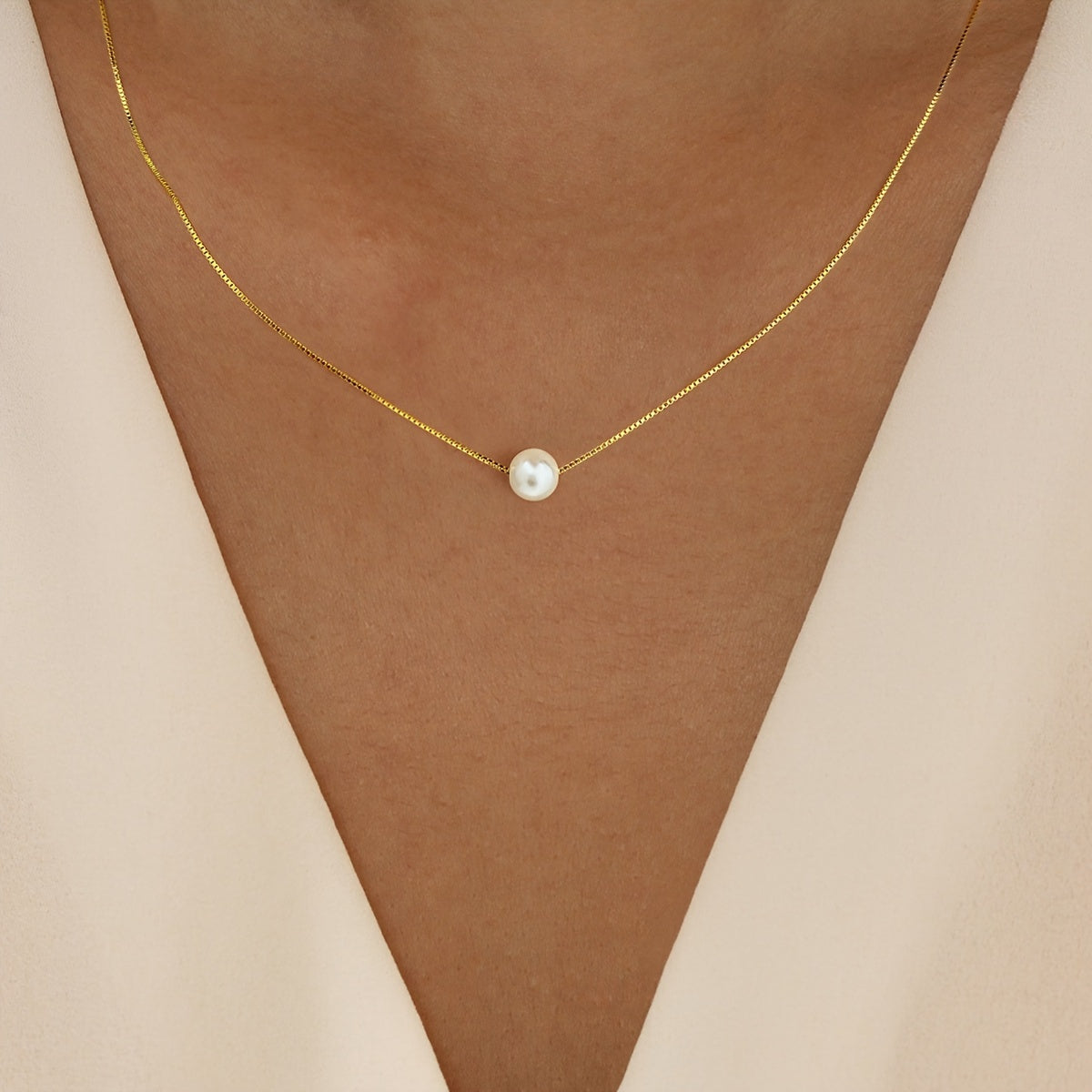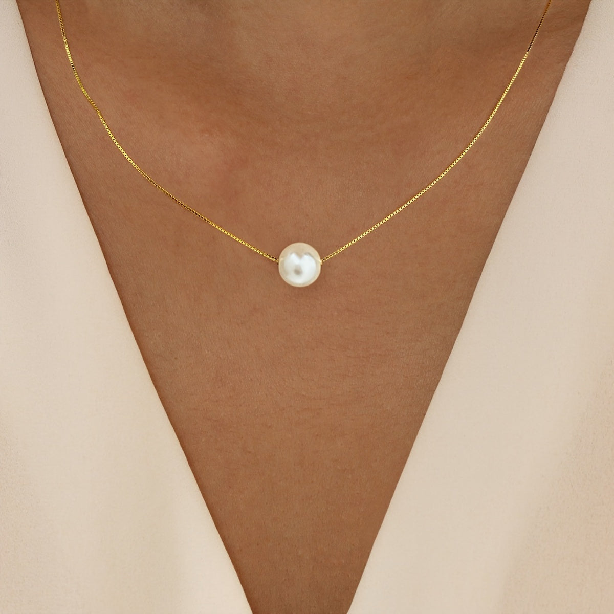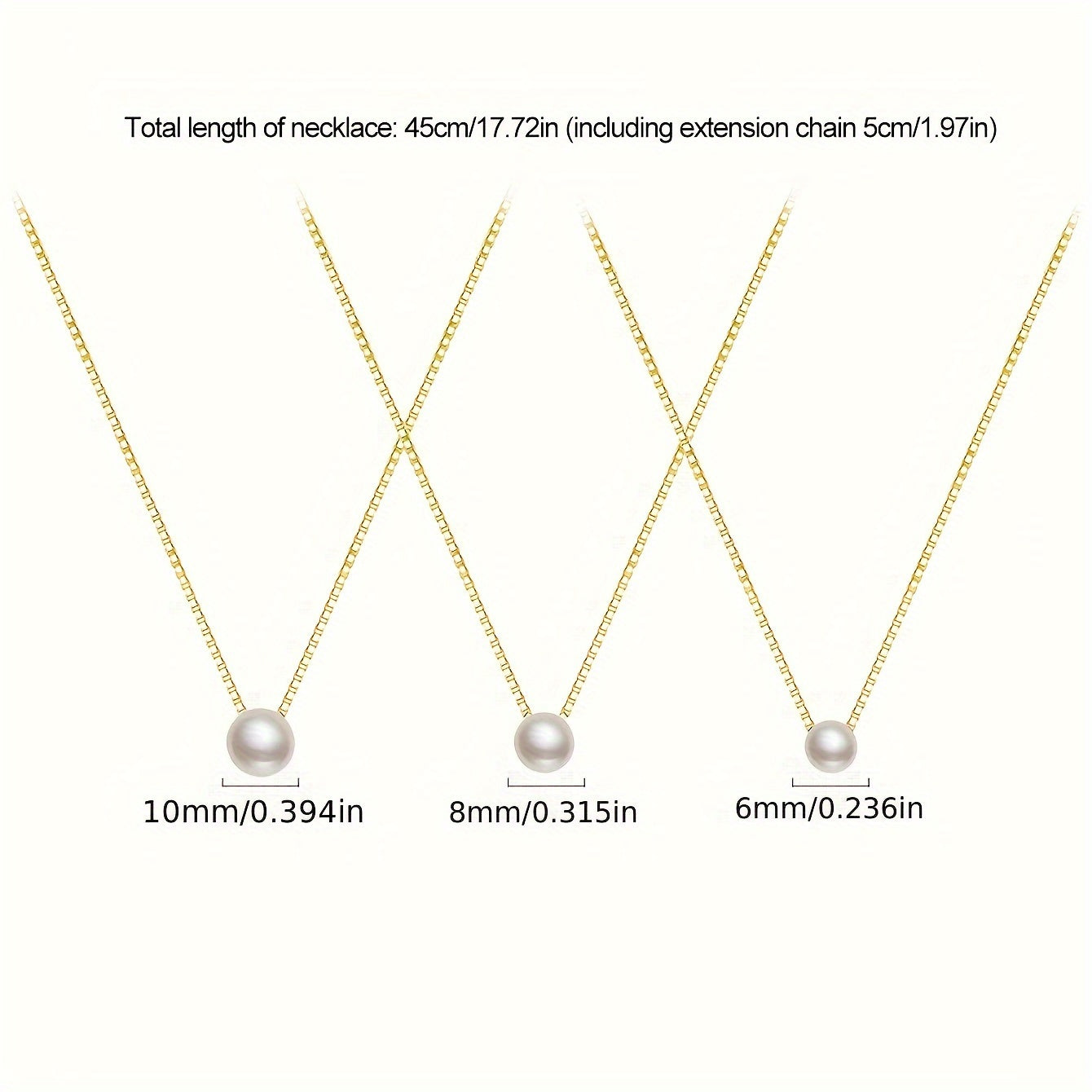 This elegant necklace features a 6-10mm faux pearl pendant on a hypoallergenic golden tone chain. It makes a perfect gift for women.