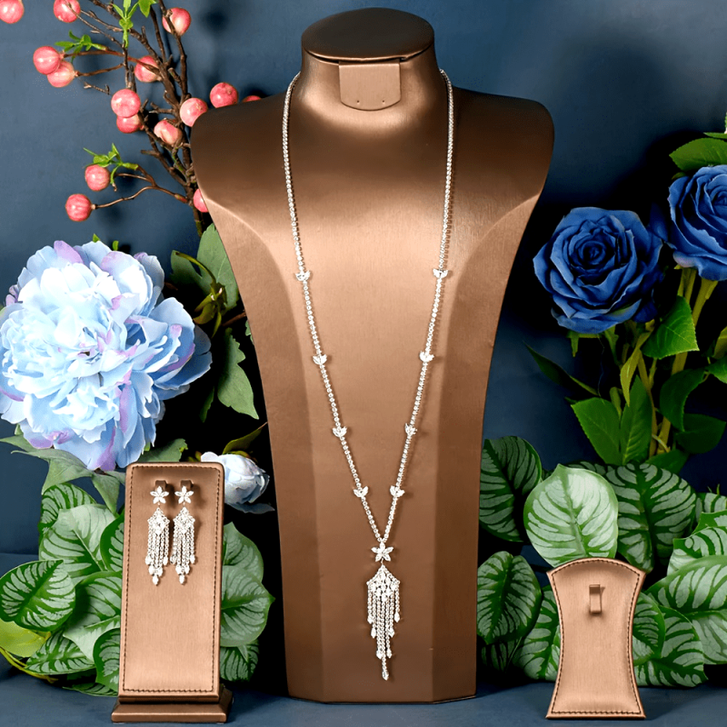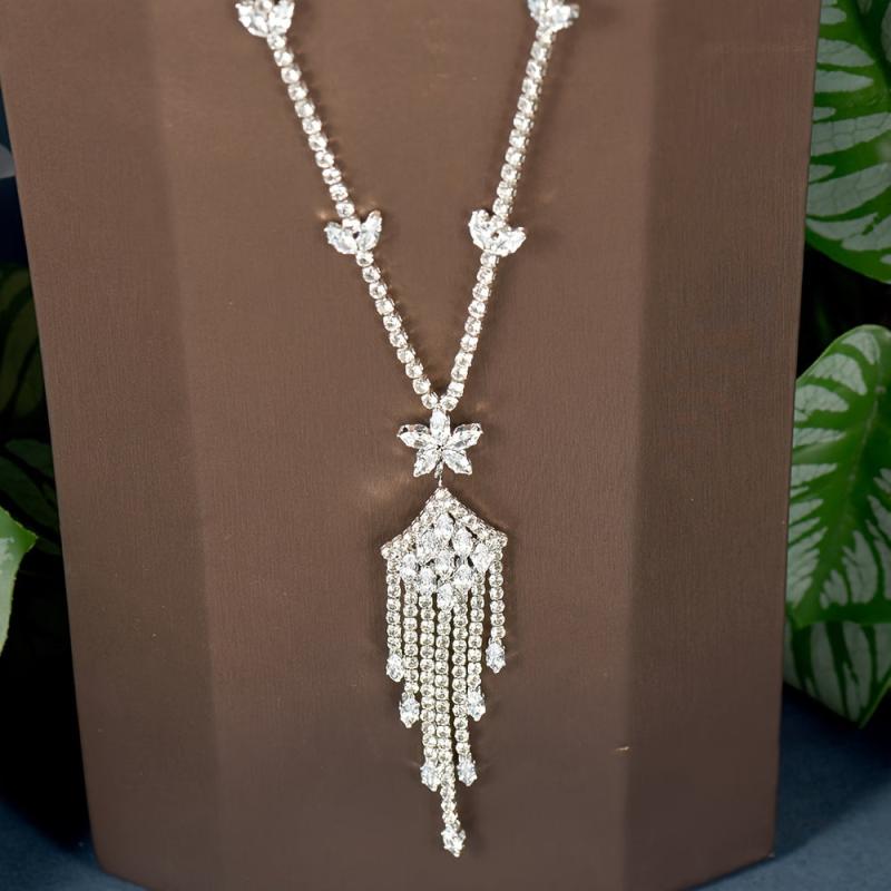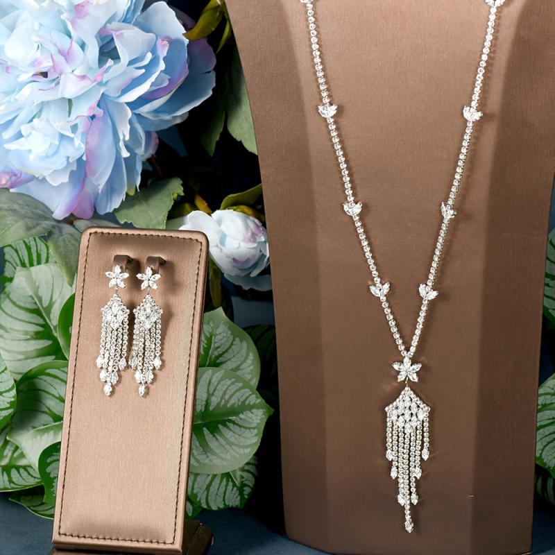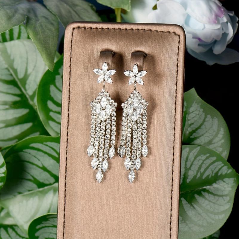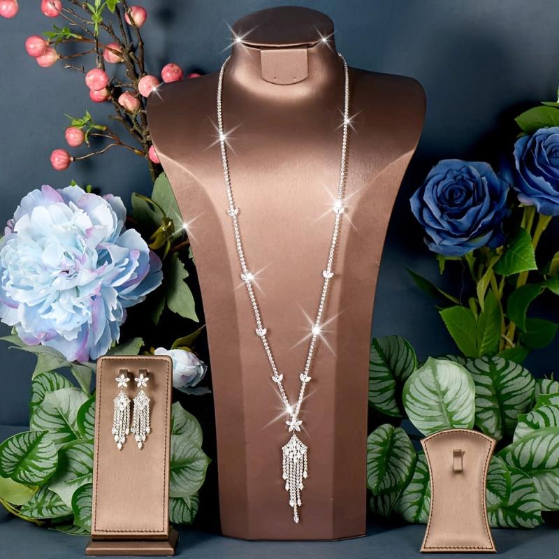 Add a touch of elegance to your look with this stunning Flower Square Sparkling Jewelry Set. Perfect for weddings, engagements, and banquets, this set features a copper zirconia design with tassel decorations.