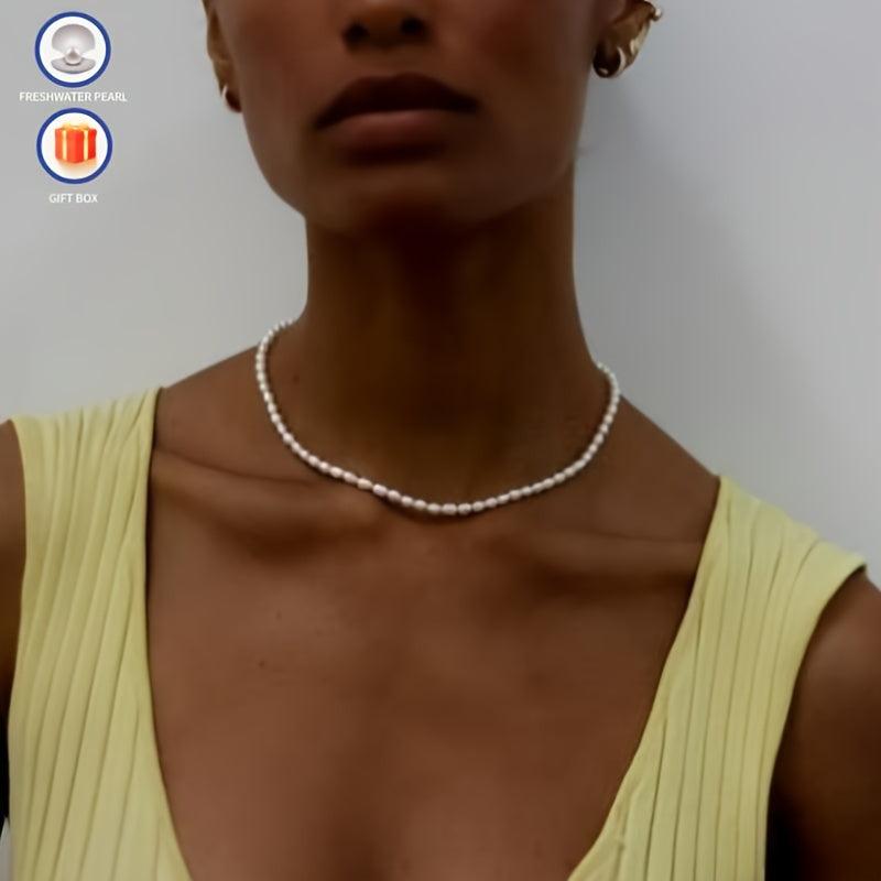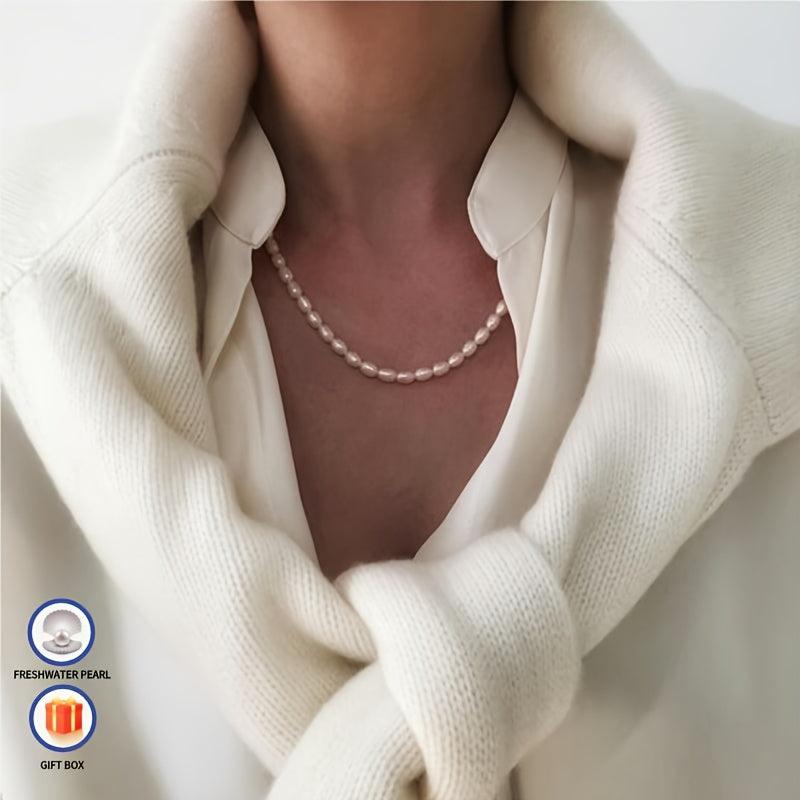 This exquisite necklace features rice-shaped pearls measuring 6-7mm in size, making it a stunning addition to any jewelry collection.