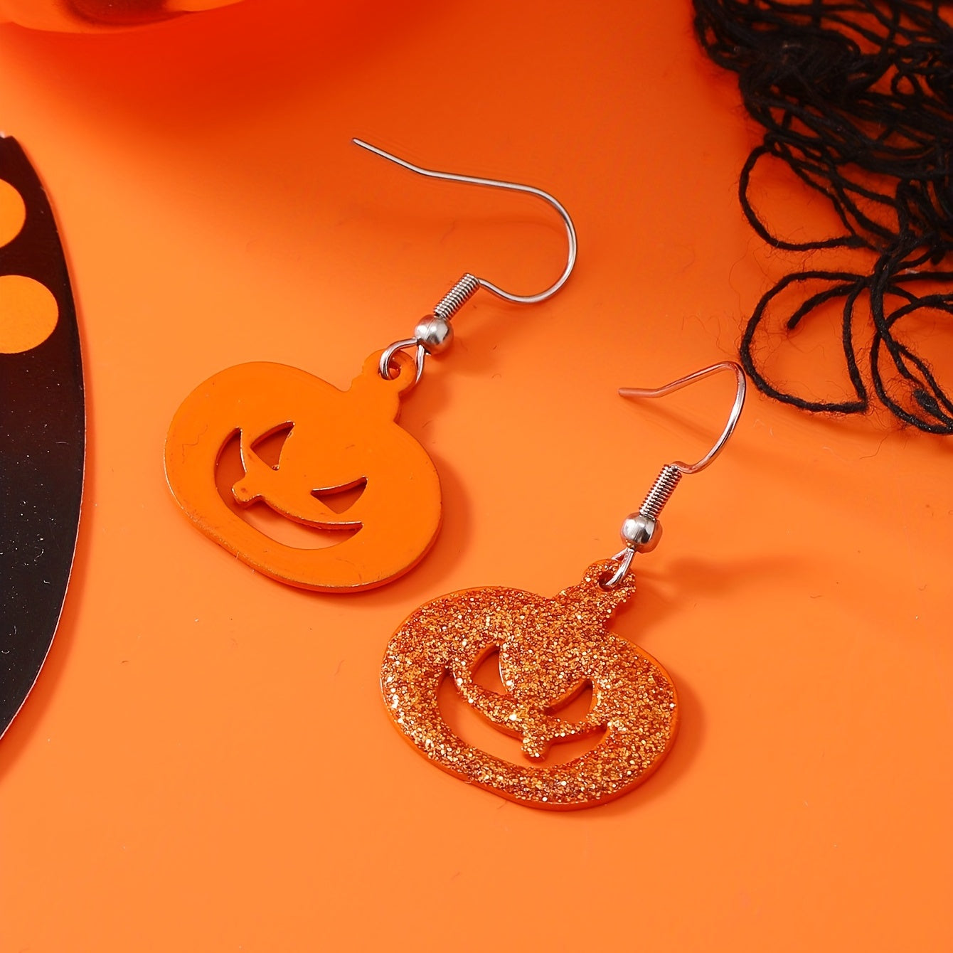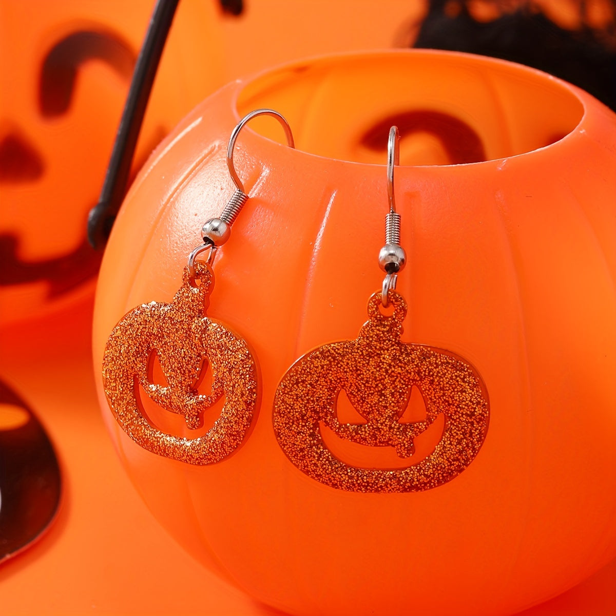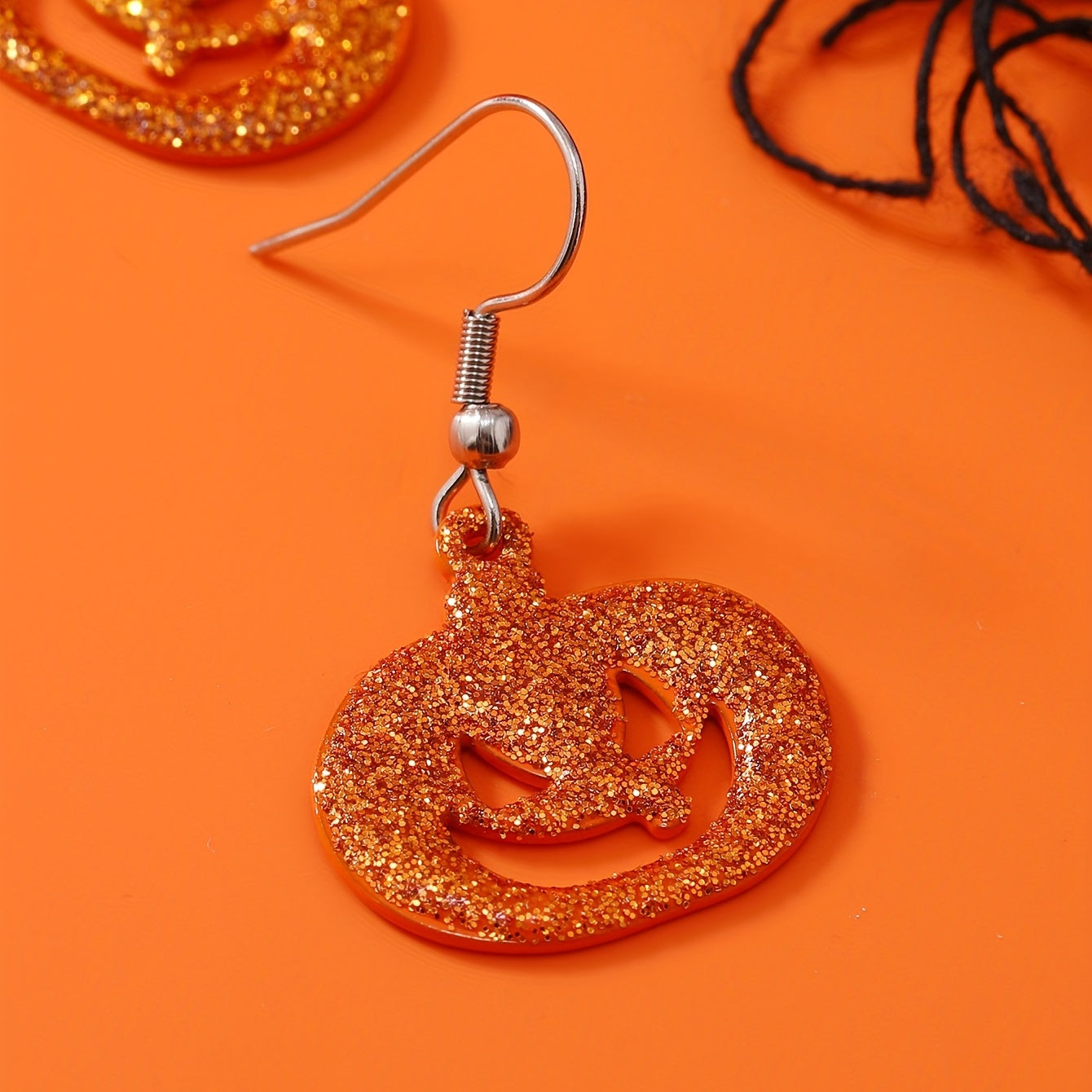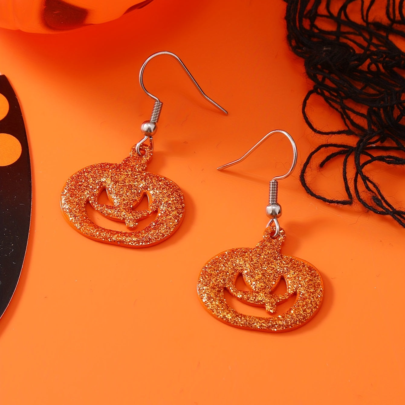 Add a touch of spooky fun to your outfit with these Halloween pumpkin sequins dangle earrings.