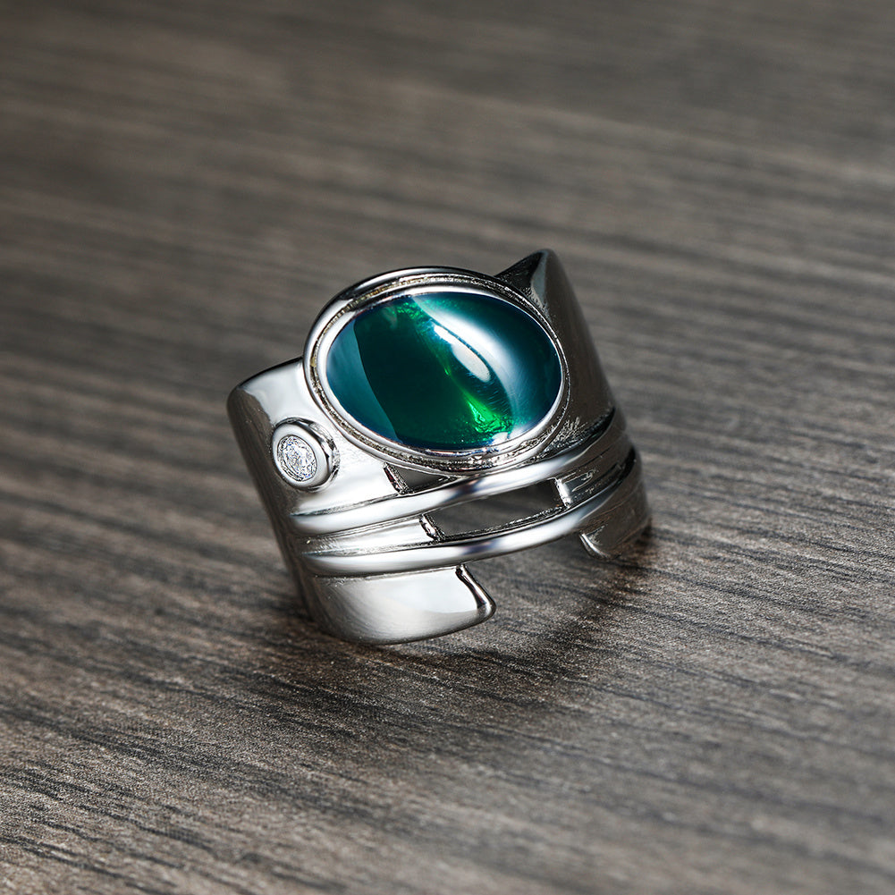 These unique rings feature a green stone set in an oval shape, perfect for both men and women. Ideal for weddings, engagements, or everyday wear.