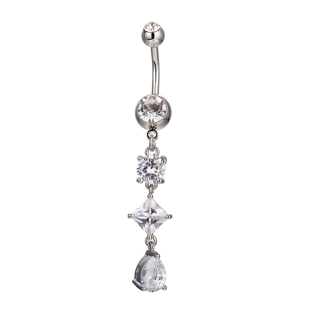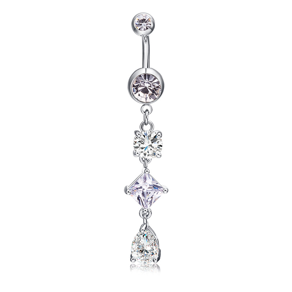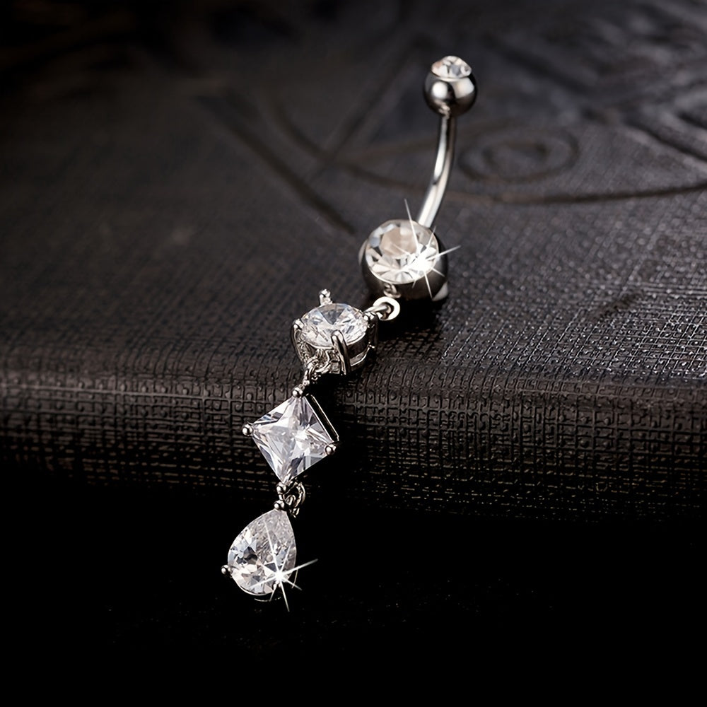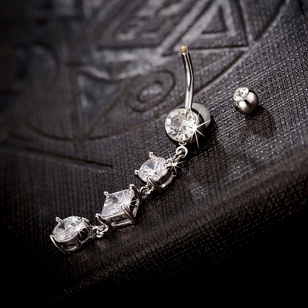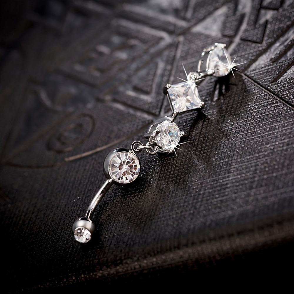 This stylish belly button ring features a geometric design with zircon inlays. It's a chic accessory to elevate your belly jewelry collection.