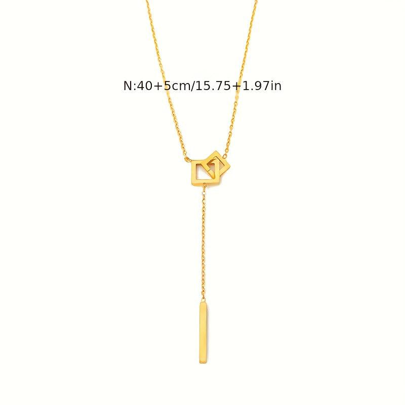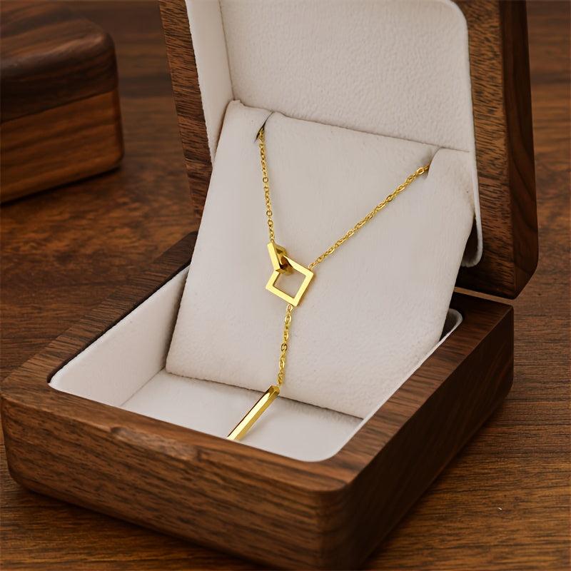Elegant and versatile, this minimalist pendant necklace features a golden geometric square and bar design. It is perfect for both casual attire and special occasions, adding a touch of sophistication to your look.