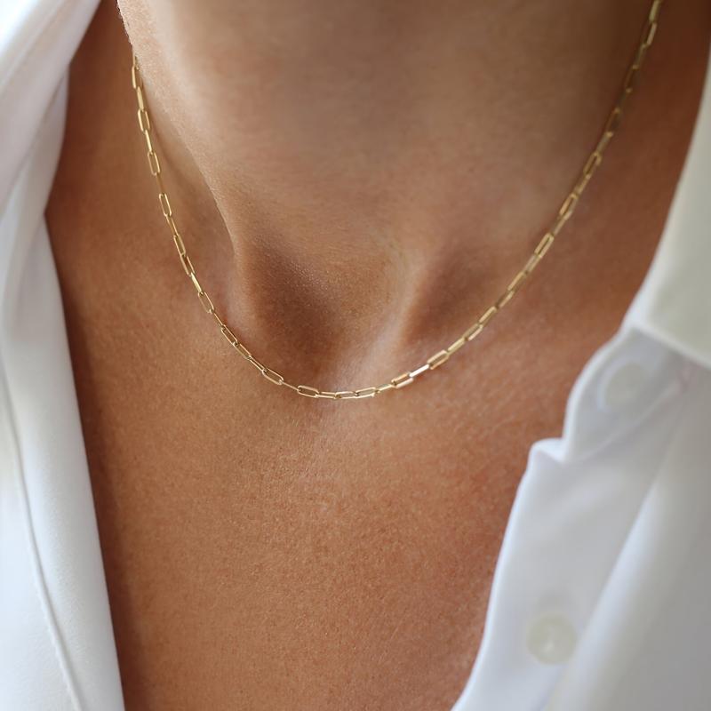 This minimalist rectangular link necklace is perfect for casual attire or gifting. It's an everyday accessory that adds a touch of elegance.