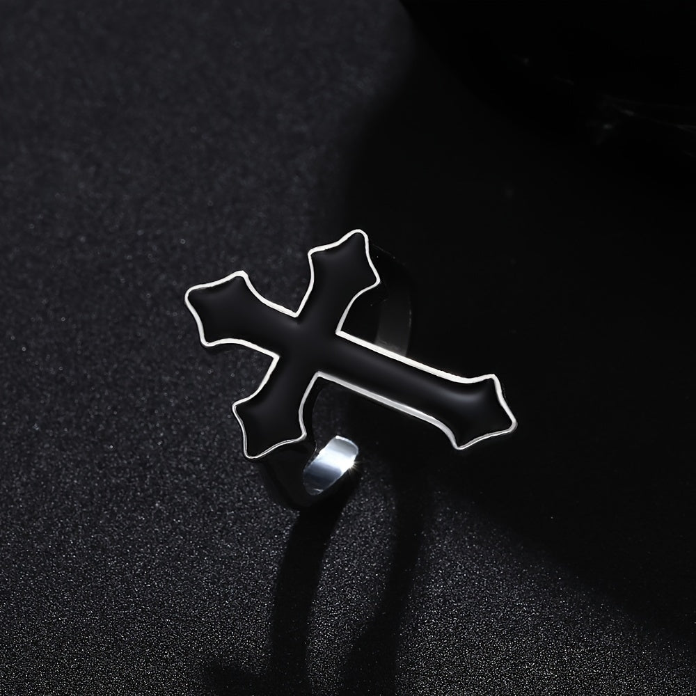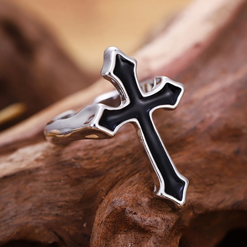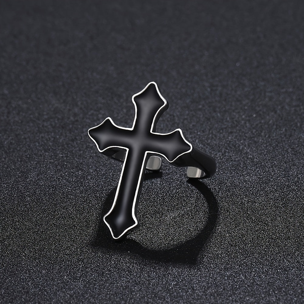 This adjustable unisex ring features a gothic punk design with a cross. It's a stylish accessory for those into hip hop culture.