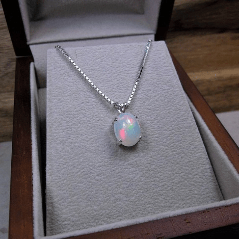 Enhance your elegance with this vintage Green Fire Opal Necklace. Ideal for weddings or everyday wear, this pendant exudes a timeless charm.