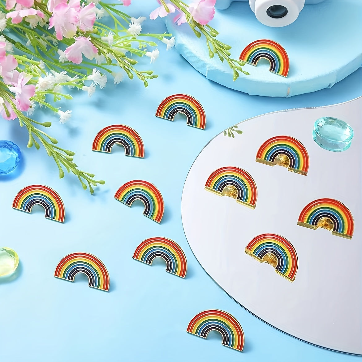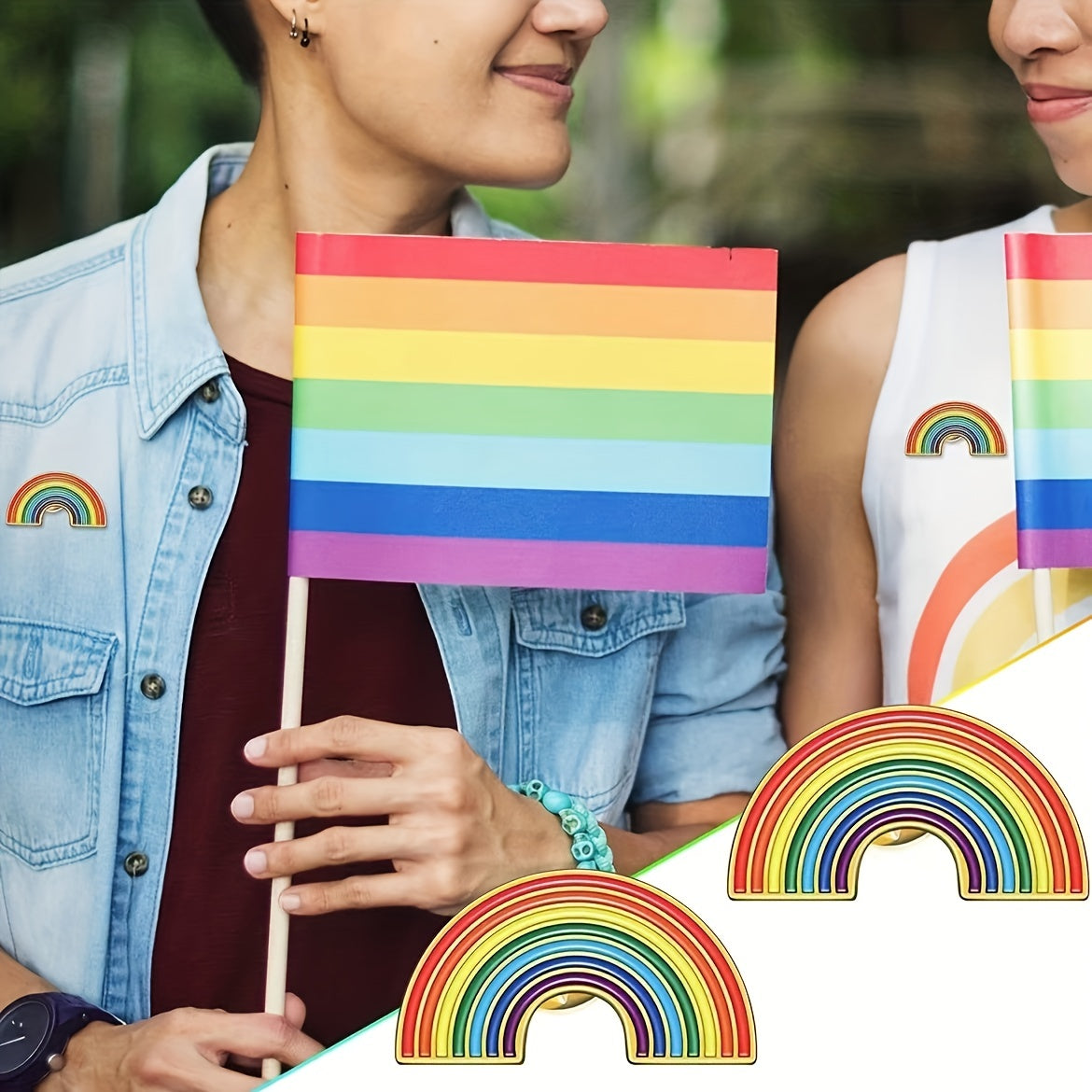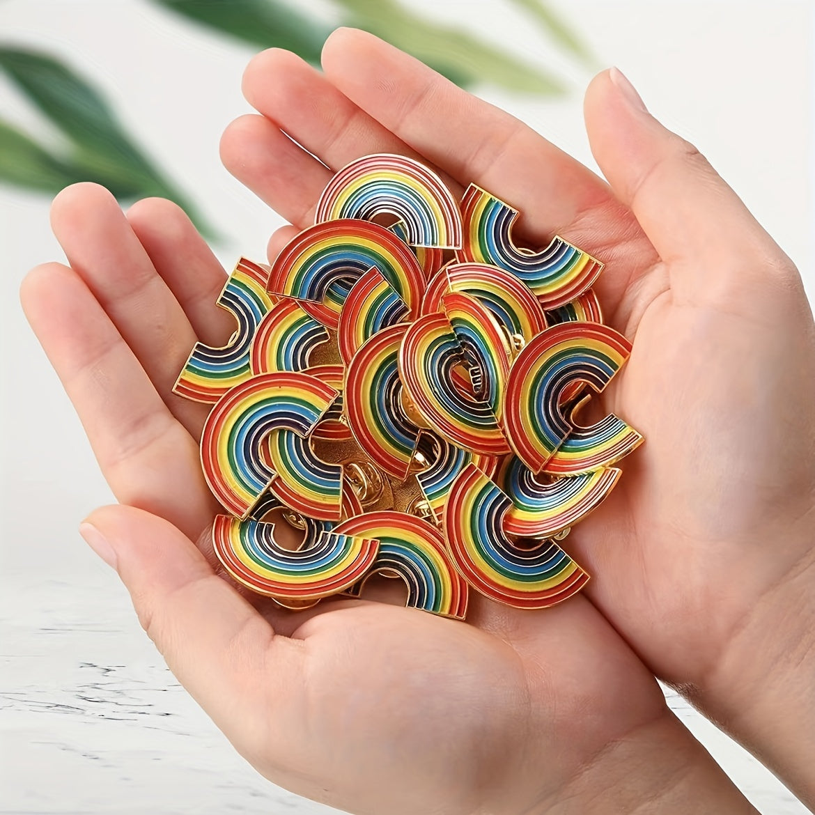 Show your pride with this colorful half round rainbow brooch pin, perfect for Pride Month celebrations and everyday wear. The enamel design adds a touch of style to any outfit.