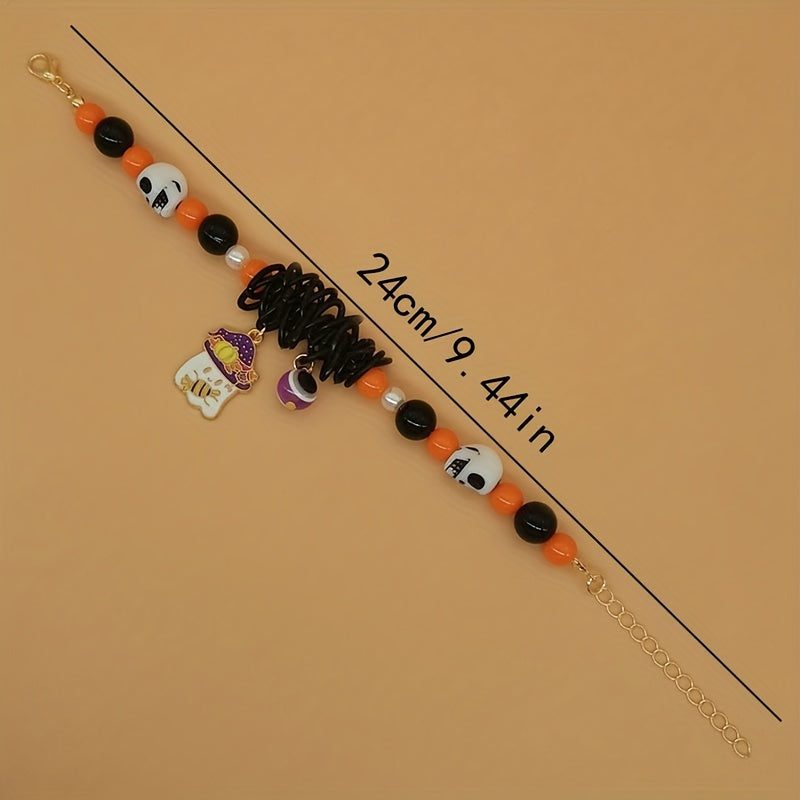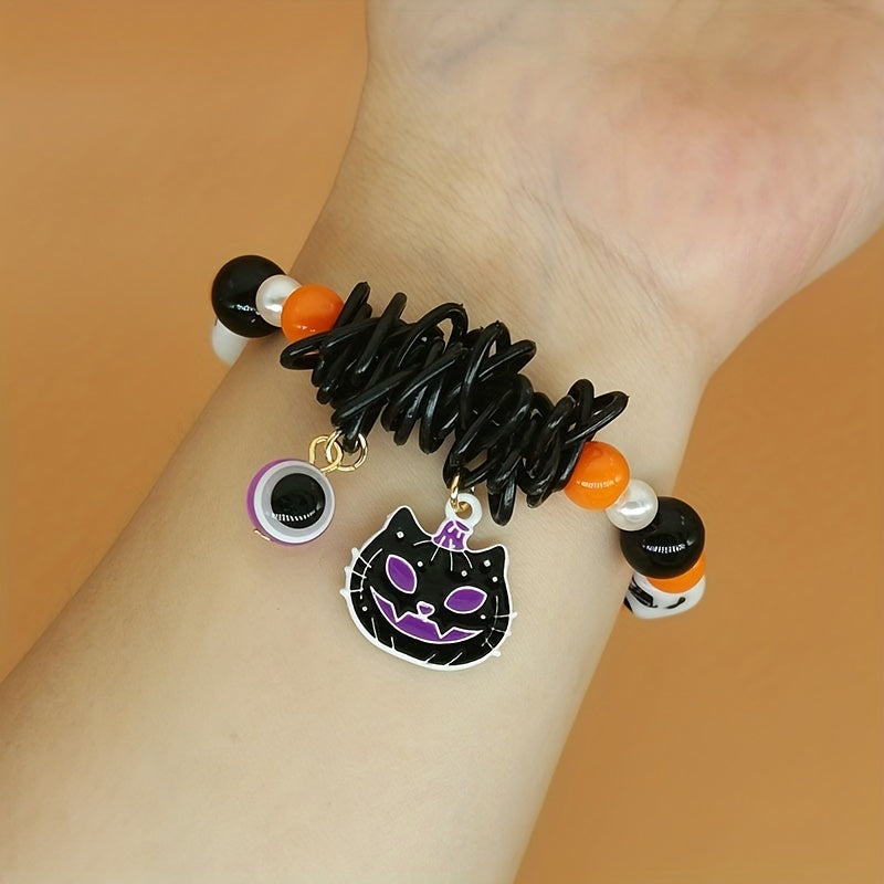 Get into the spooky spirit with these Halloween-themed bracelets featuring pumpkins, bats, eyes, and skulls. Perfect for holiday parties!