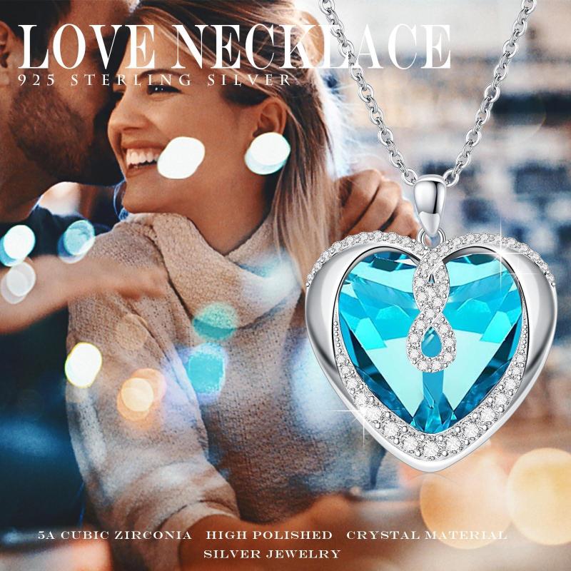 Heart Necklace 925 Sterling Silver Infinity Chain Pendant Mother's Day
