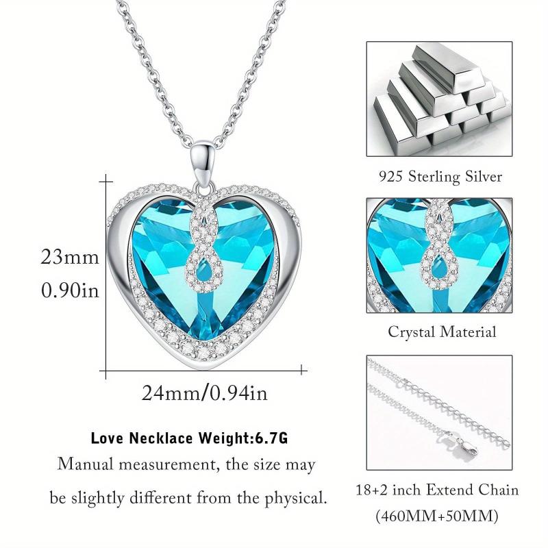 Heart Necklace 925 Sterling Silver Infinity Chain Pendant Mother&