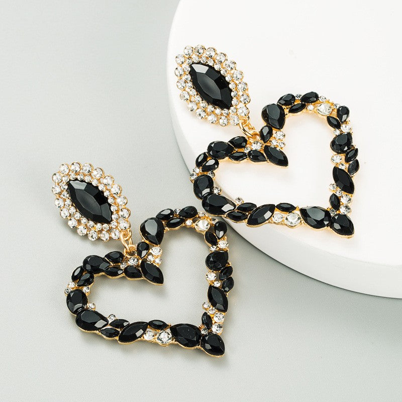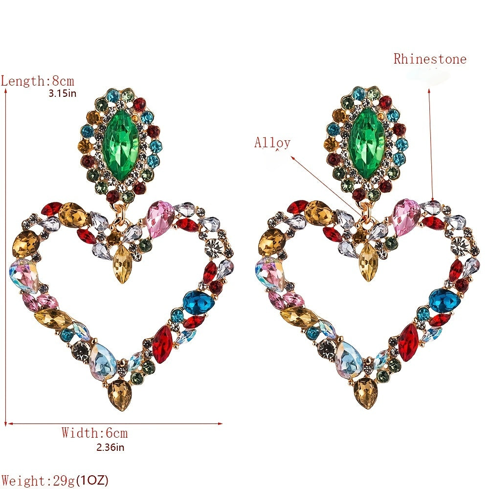 These exaggerated drop earrings feature a hollow heart shape design adorned with colorful rhinestones, embodying a punk style for a daring look. Perfect for a gift!
