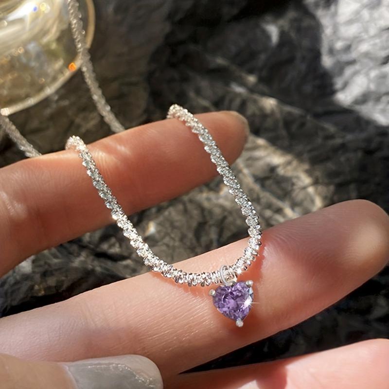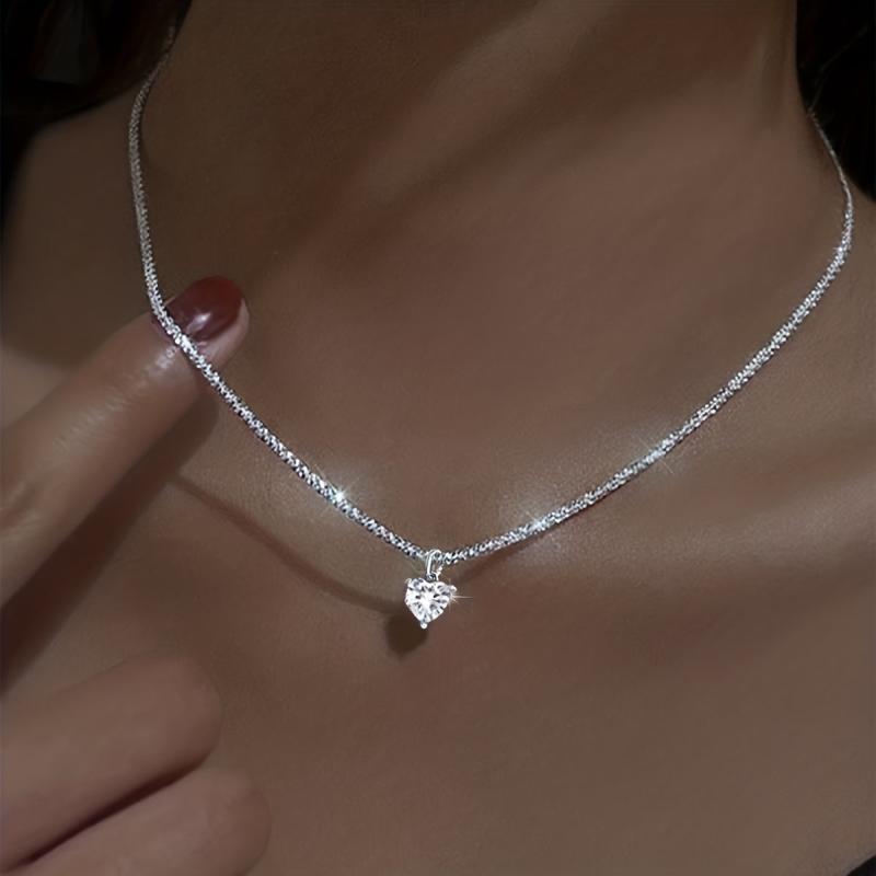 This elegant necklace features a sparkling zircon heart pendant on a delicate collarbone chain. Perfect for women and girls who love adding a touch of glamour to their outfit.