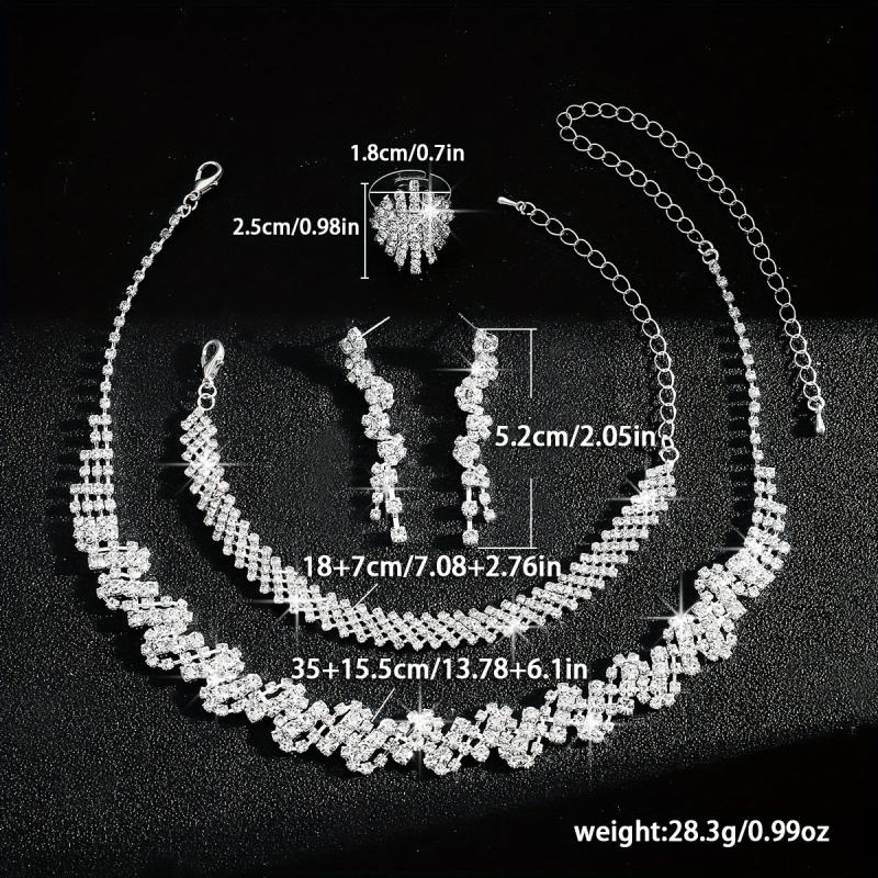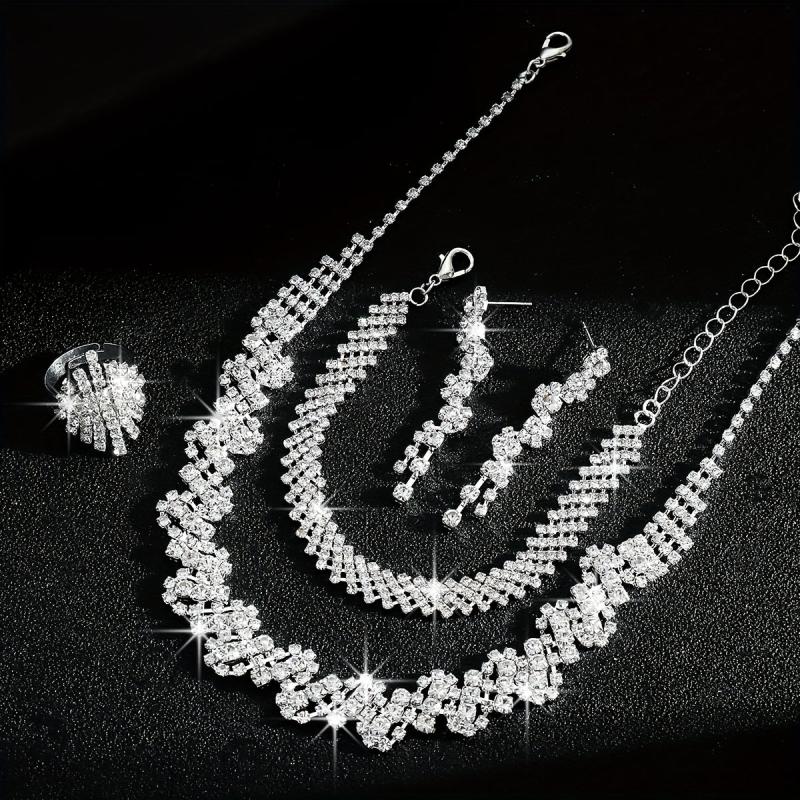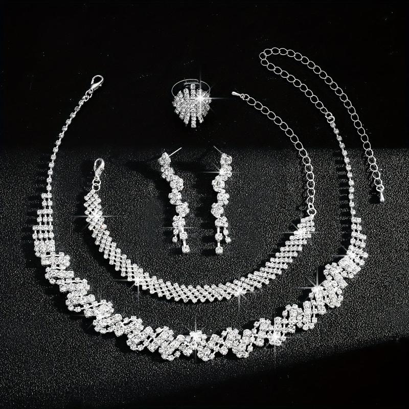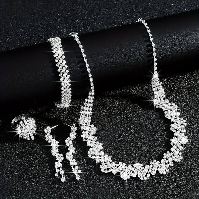 Elevate your look with this fashionable jewelry set, featuring a necklace, bracelet, earrings, and ring. Perfect for special occasions.