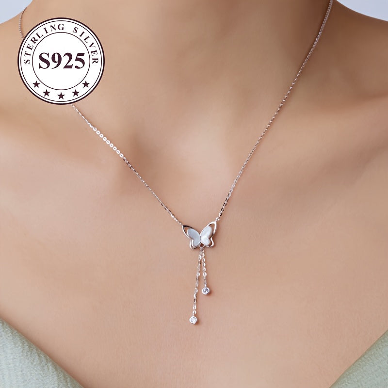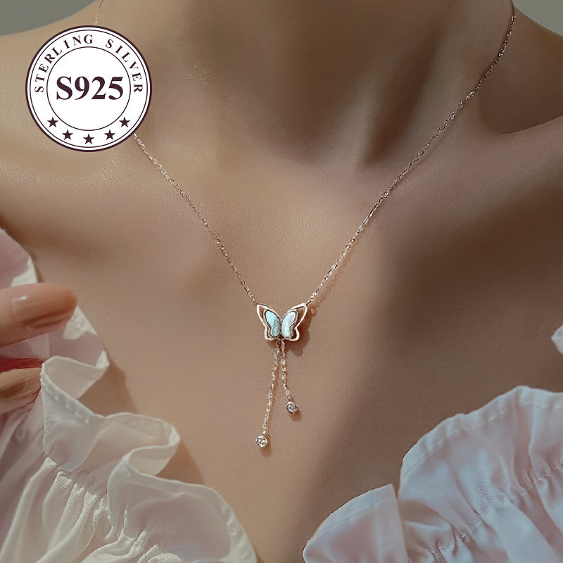 This delicate necklace features a butterfly design with tassel details, perfect for adding a touch of sweet charm to any outfit. A great gift for mothers or any special occasion.