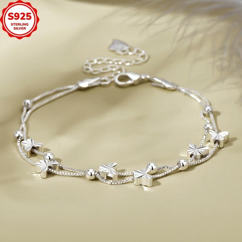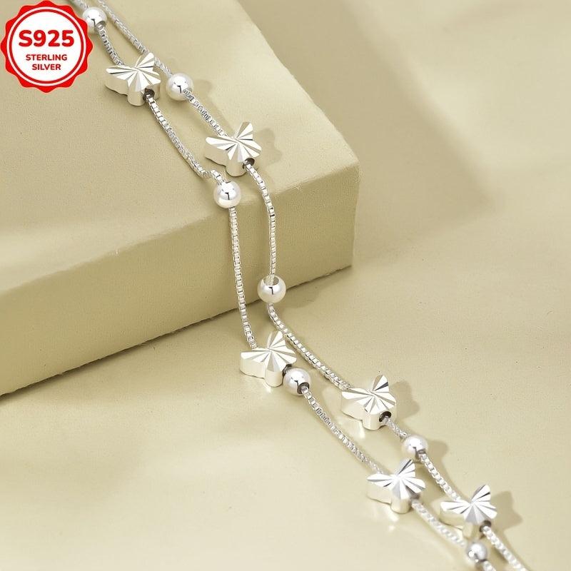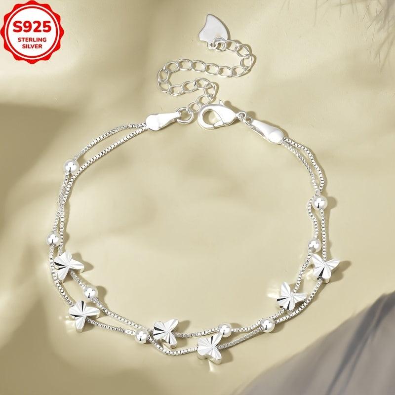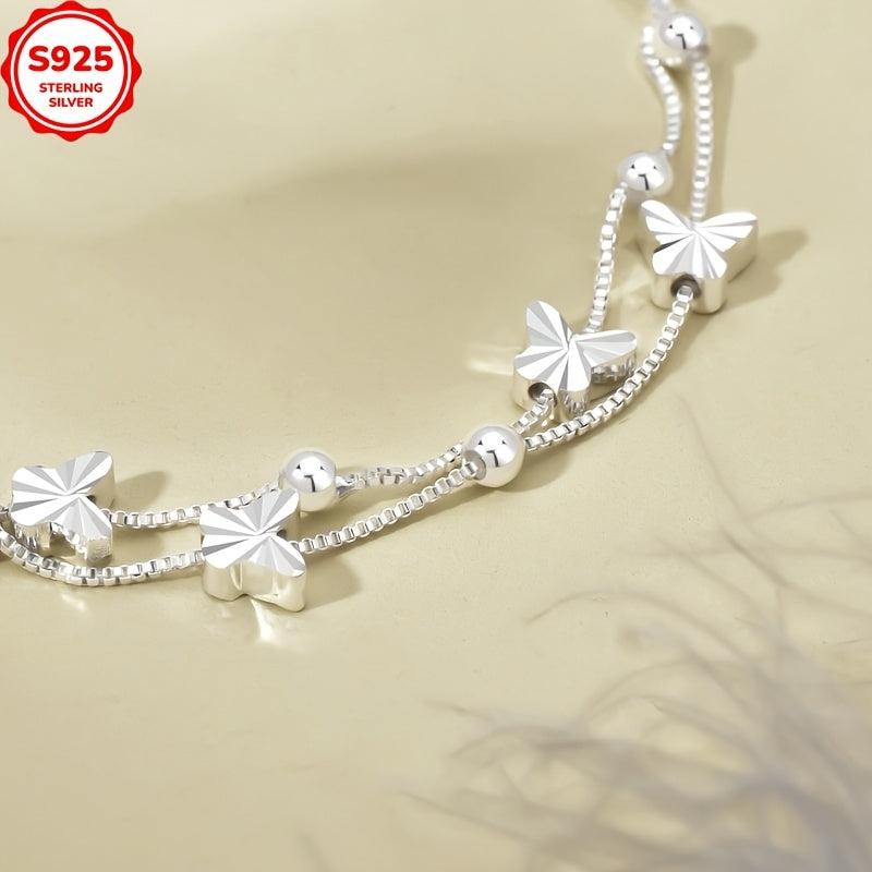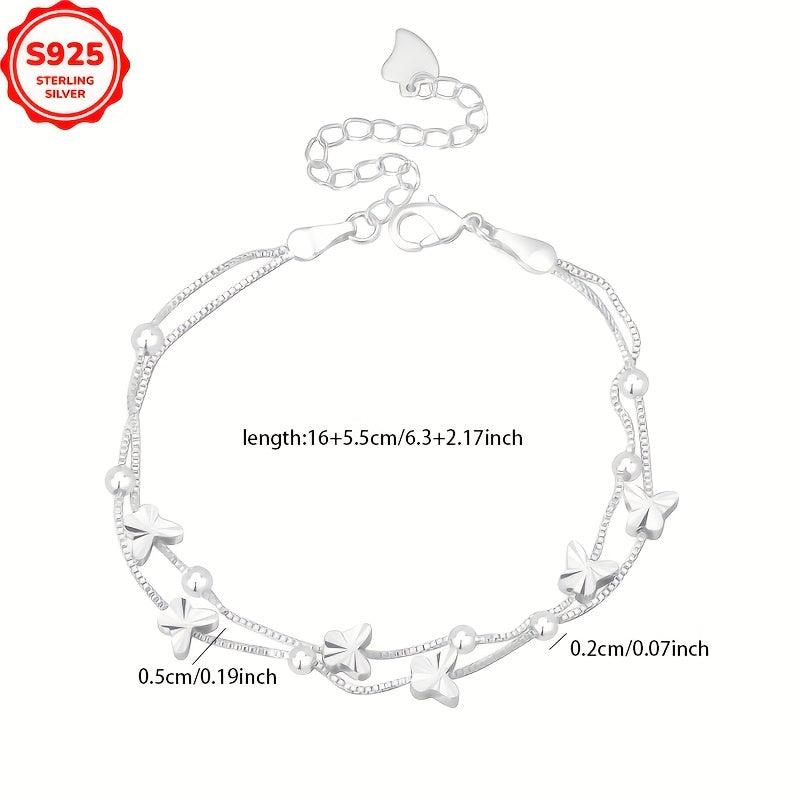 This elegant bracelet features a double layer design with carved flower craft and butterfly beads. Suitable for all seasons, it comes in an anti-oxidation box, making it a great gift.