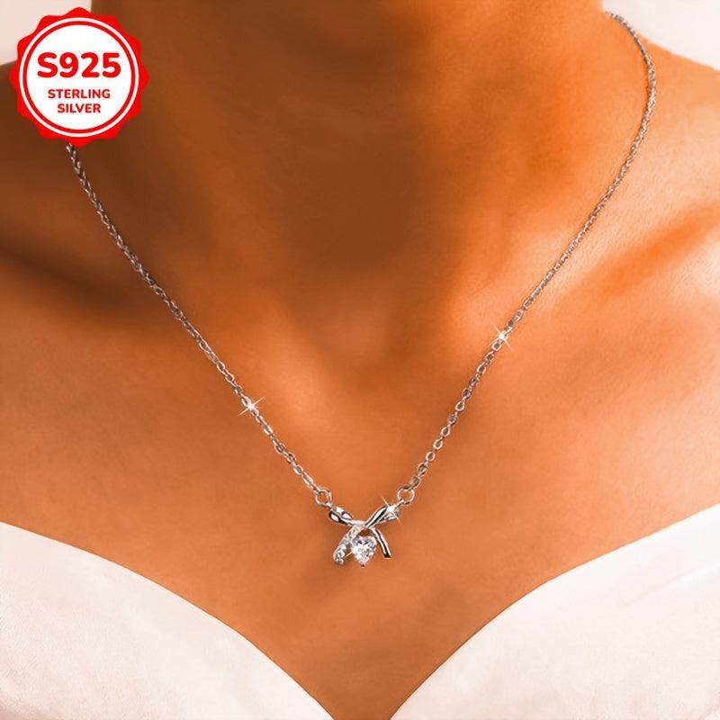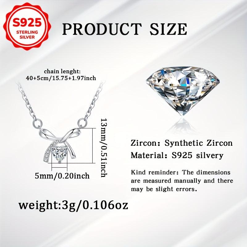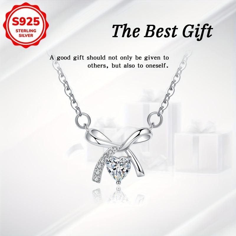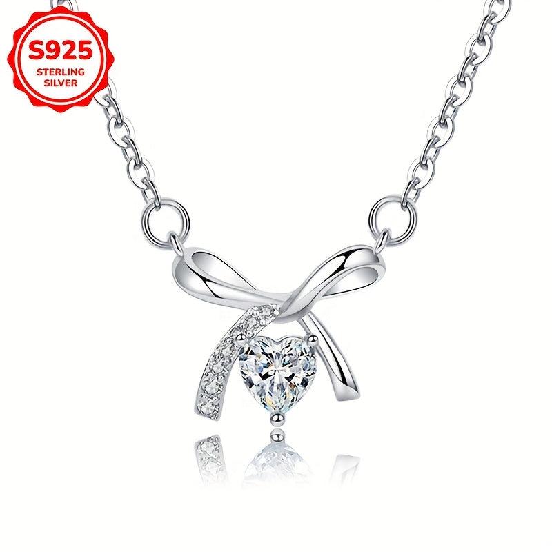 Elegant pendant necklace featuring a refined butterfly heart design with synthetic zirconia stones. Made of 925 sterling silver with a weight of 5g. Perfect for daily wear, dates, vacations, parties, and holidays.