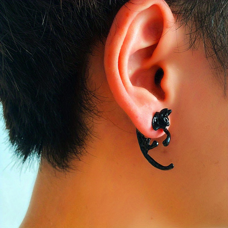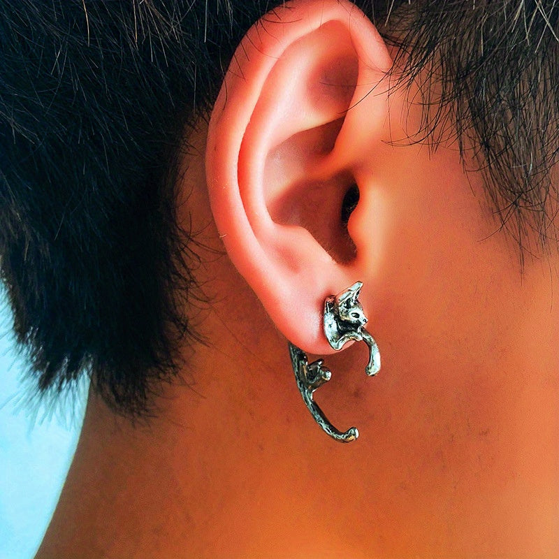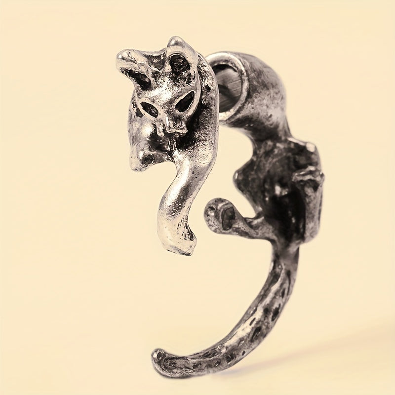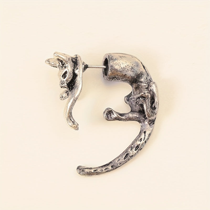 Add a touch of retro goth style with these unique silvery stud earrings featuring a leopard cat design. Made of high-quality zinc alloy, these earrings are perfect for everyday wear or as a gift for a female friend.