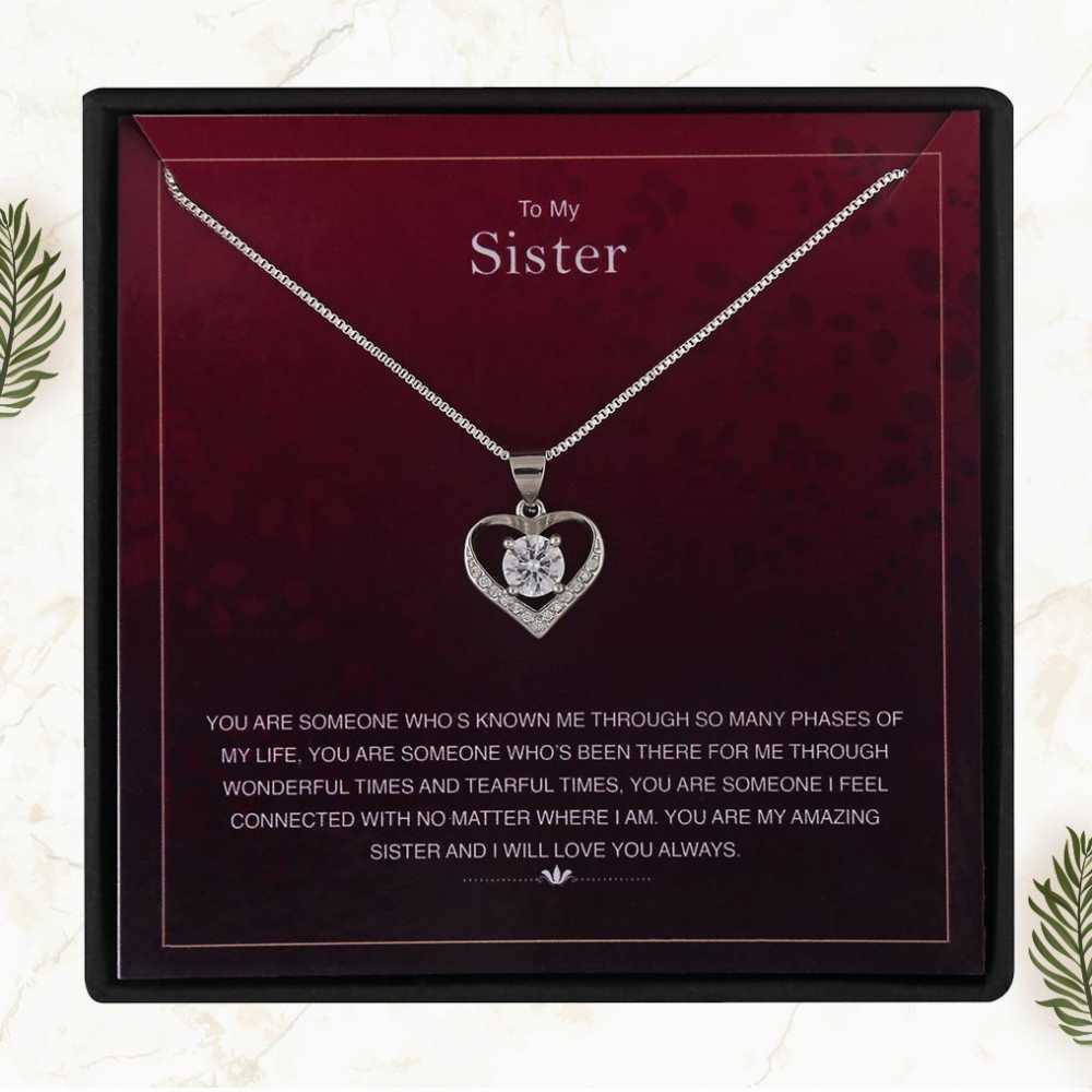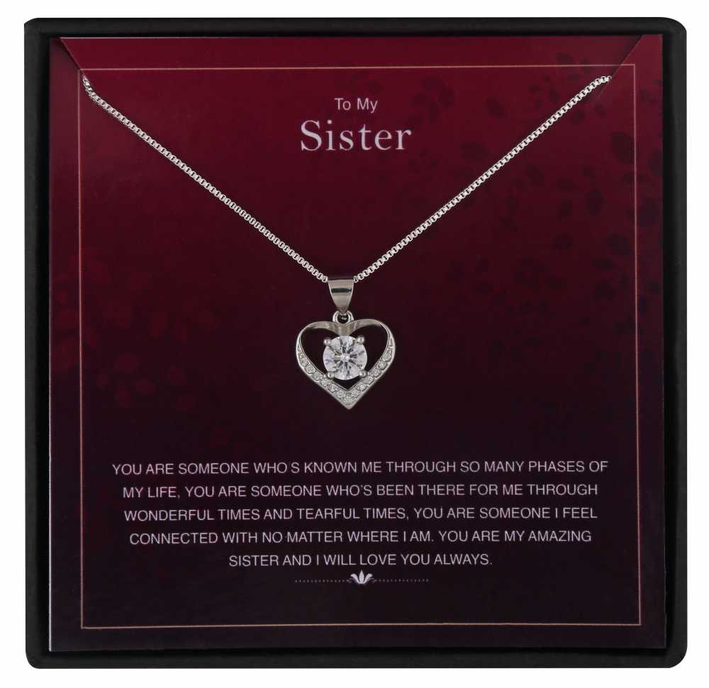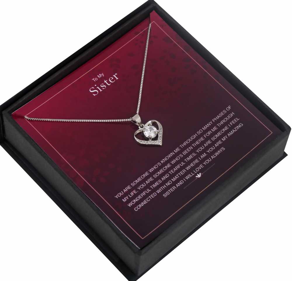 Faites en sorte que votre petite sœur se sente spéciale en lui offrant ce cadeau spécial. Le cadeau est accompagné d'un élégant collier pendentif plaqué argent. Le pendentif est parsemé de zircones cubiques brillantes qui ajoutent de l'éclat à l'ensemble du bijou. Le cadeau est accompagné d'une jolie carte de message qui reflète vos pensées sur votre sœur. Offrez-le à votre partenaire de crime et gagnez son précieux sourire.