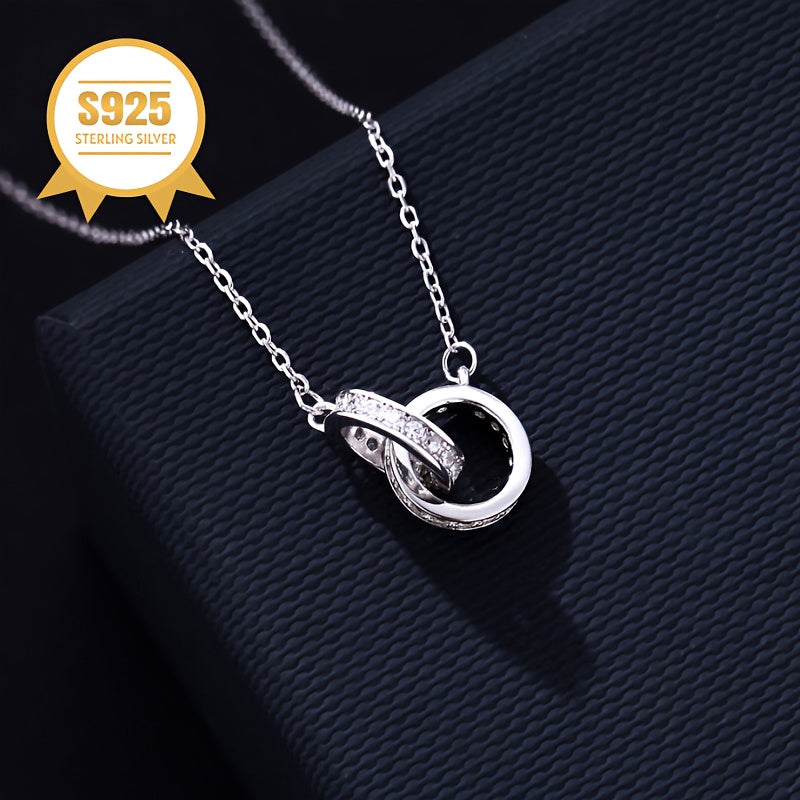 This double ring necklace is designed for women with sensitive skin, made of hypoallergenic materials. The light and versatile round ring pendant adds a touch of elegance to any outfit.
