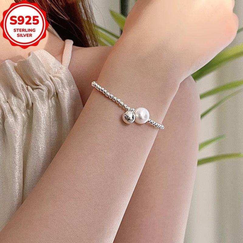 This stylish bracelet is perfect for women with sensitive skin, featuring round beads and a light, cold color palette. It adds a fashionable and elegant touch to any outfit.