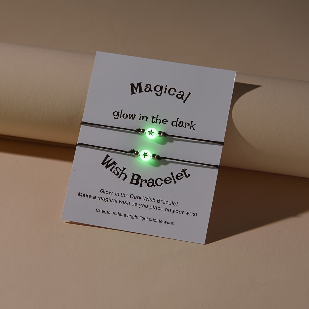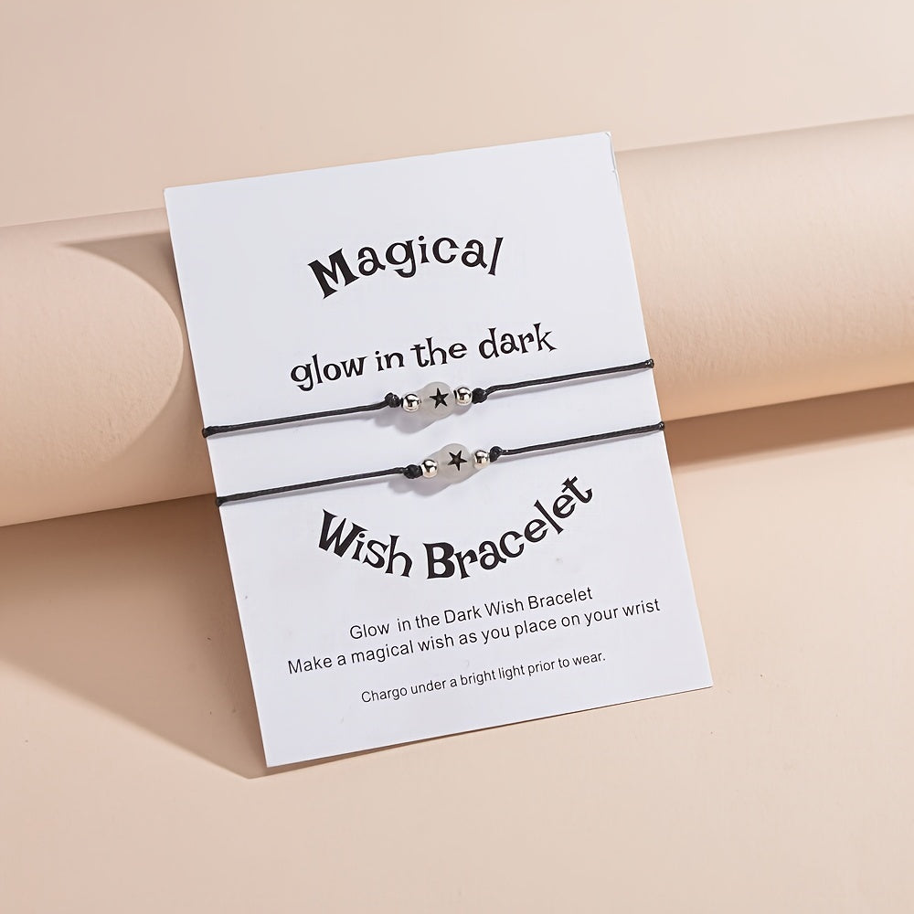 This dainty hand jewelry set features luminous star beads on a string bracelet, perfect for couples. Add personality to your style with these rope bracelet sets.