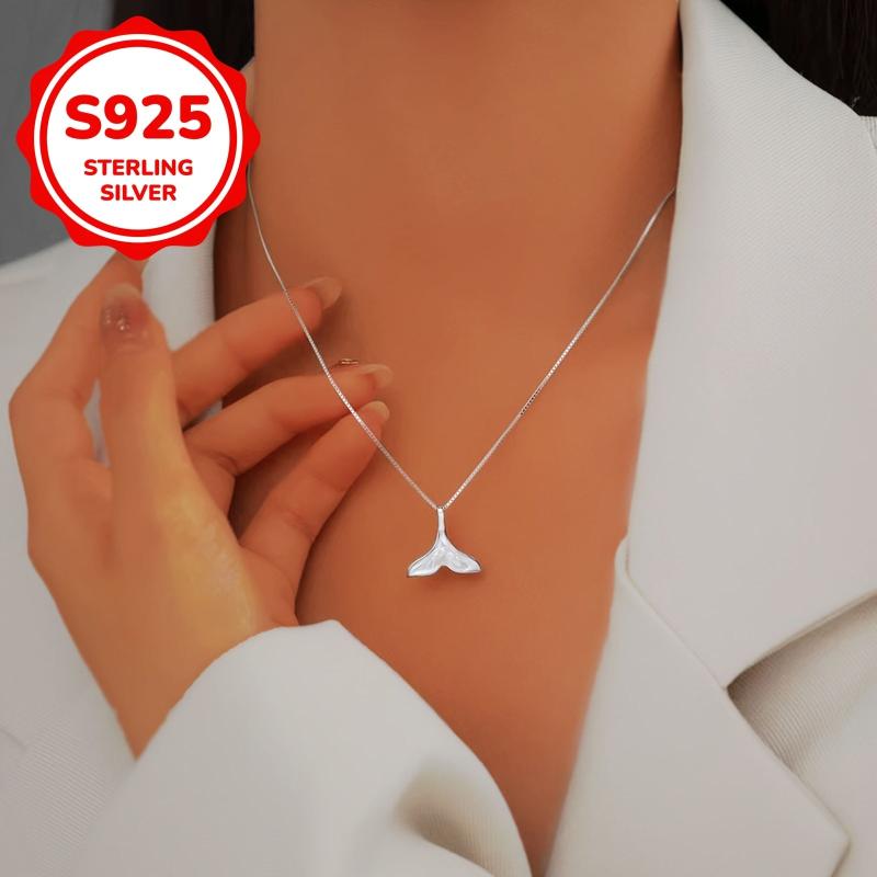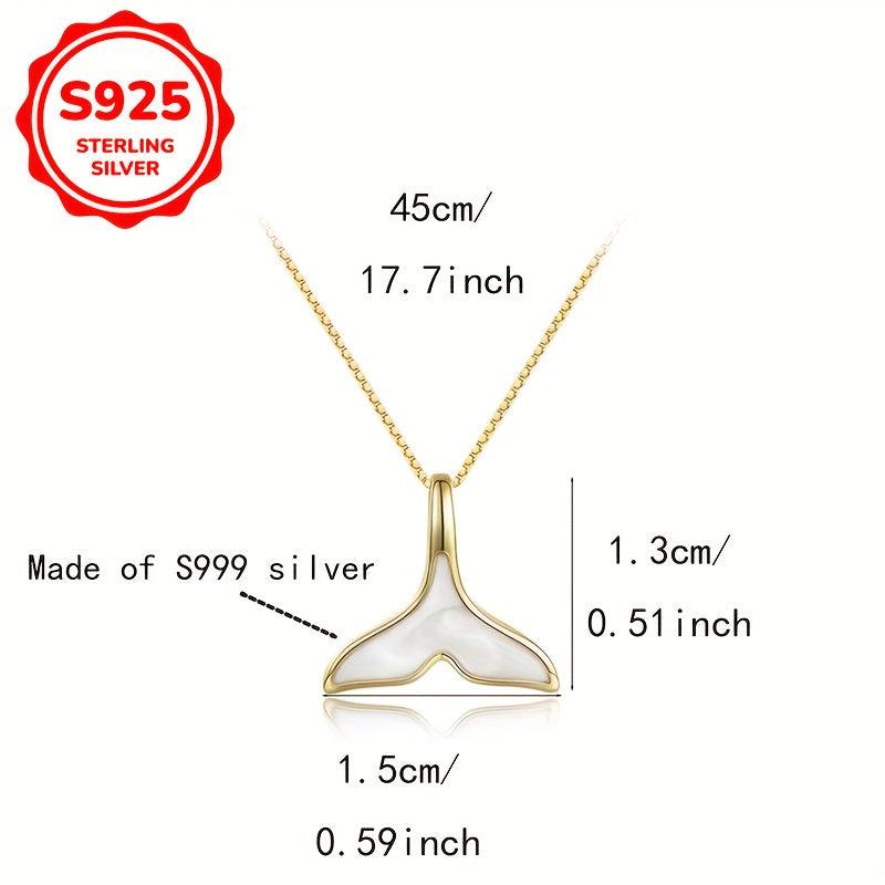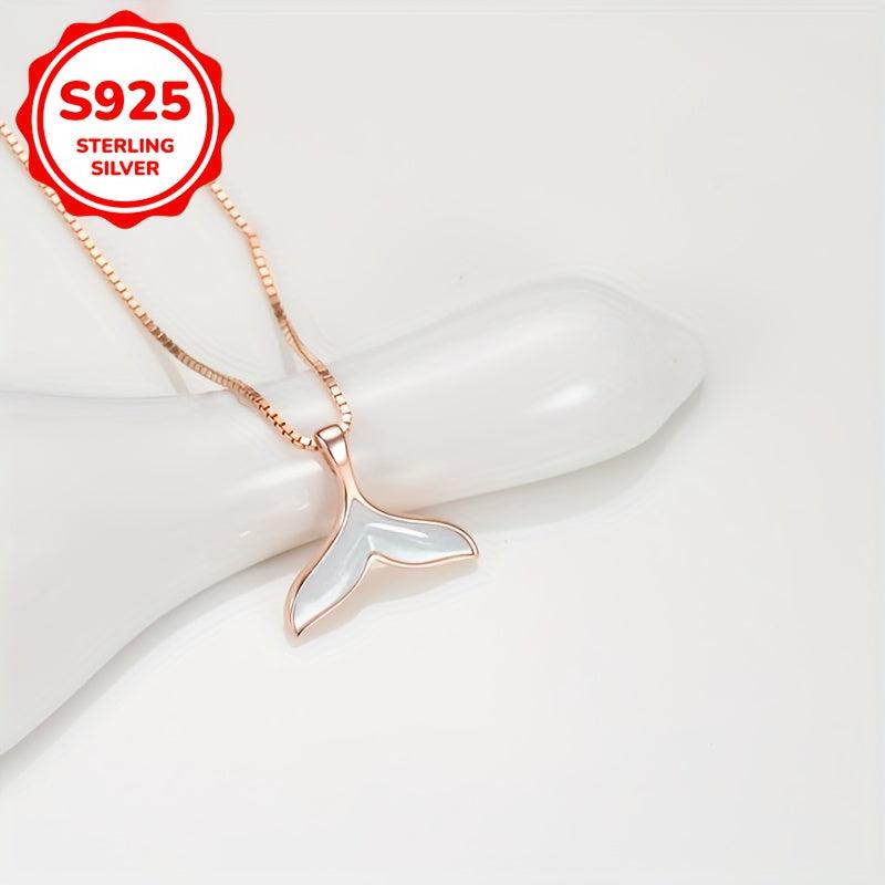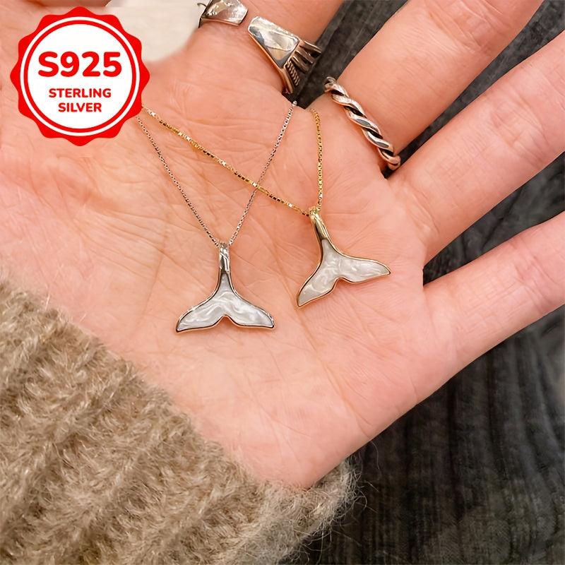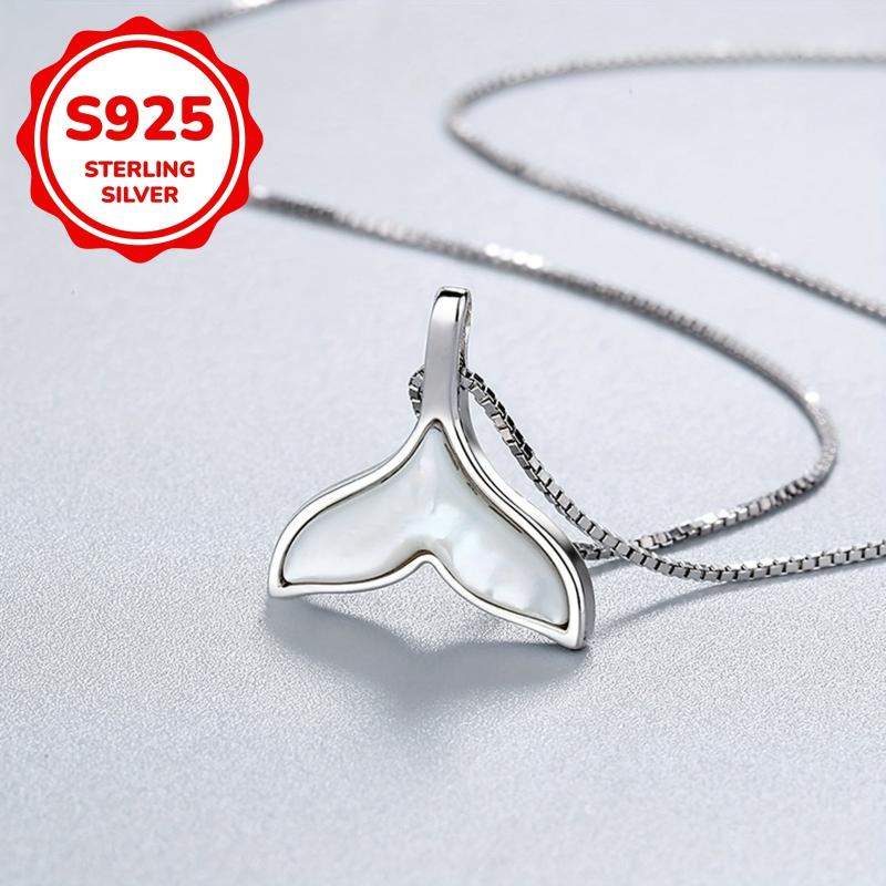 Elegant S925 sterling silver necklace featuring a mermaid tail pendant with beautiful mother of pearl inlay. Perfect for daily wear or as a gift for any occasion.