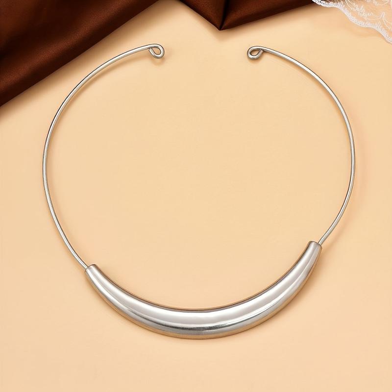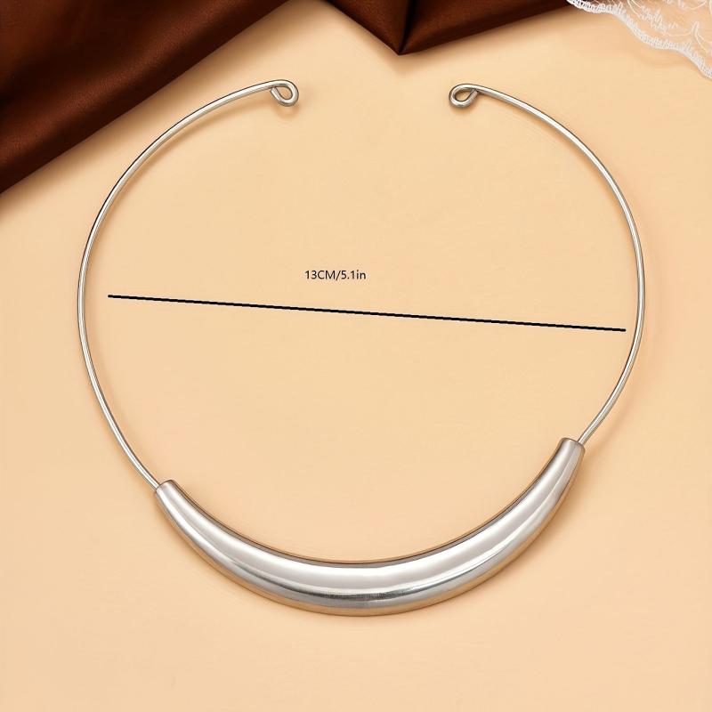 • Stylish and minimalist silver metal collar necklace