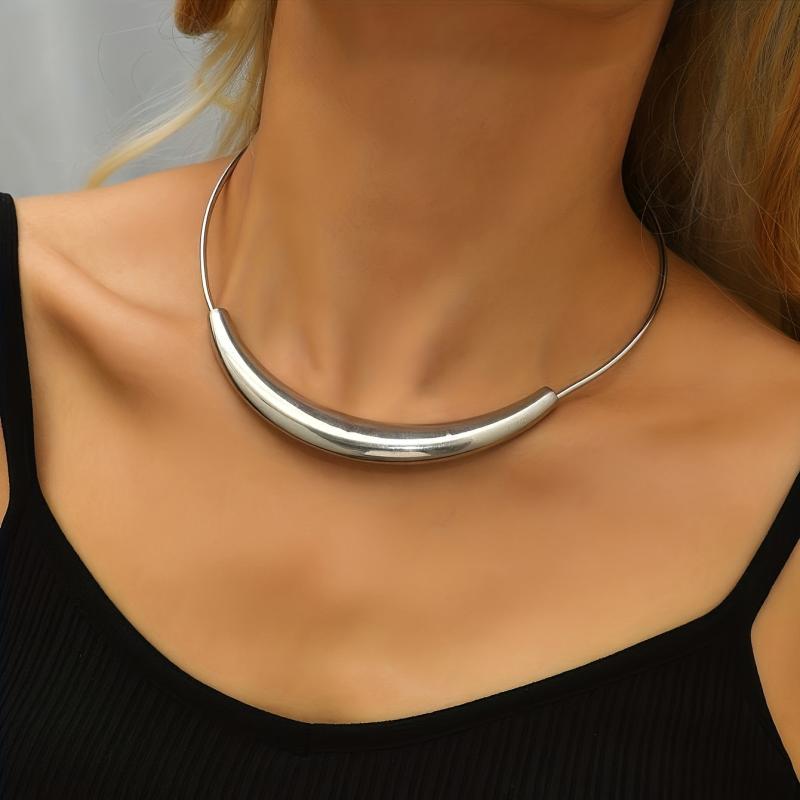 Minimalist Silver Metal Tube Collar Necklace for Casual Attire