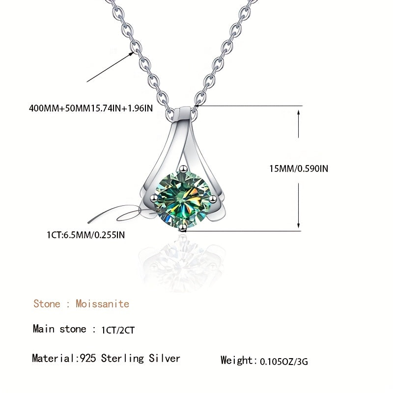 Make a statement with this elegant pendant necklace featuring a 1CT moissanite stone set in S925 pure silver. Perfect for parties, holidays, Christmas, Valentine's Day, or as a gift for any occasion.