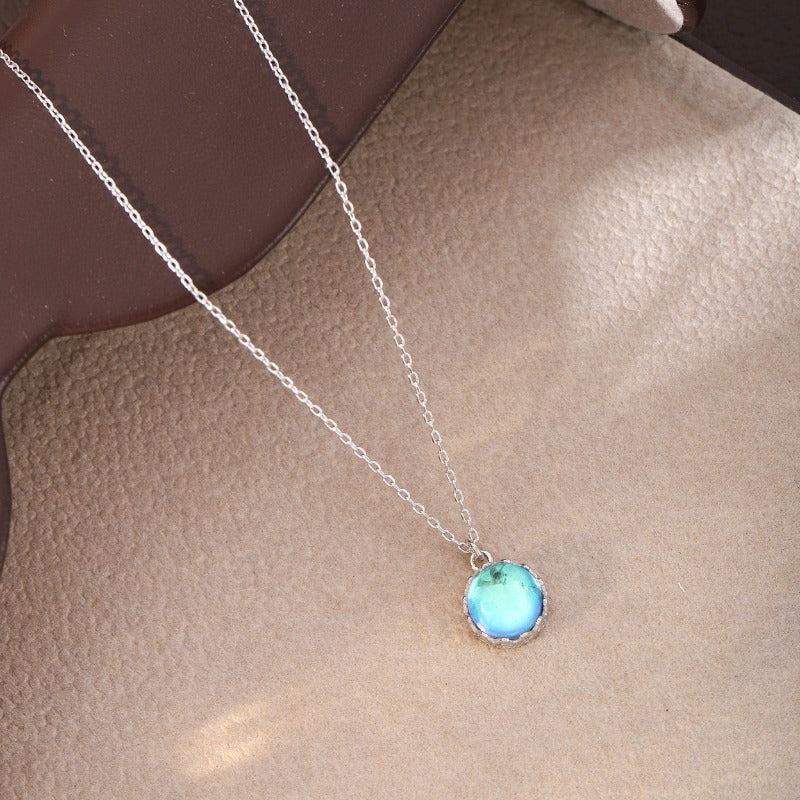 This Moonstone pendant necklace is a beautiful accessory that makes a unique birthday or anniversary gift. It is lightweight and perfect for adding a touch of elegance to any outfit.