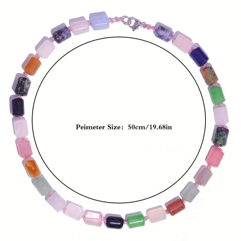 This colorful beaded necklace features pink quartz and African turquoise stones, making it a versatile accessory for casual attire. It is an ideal gift for Mother's Day or Valentine's Day.