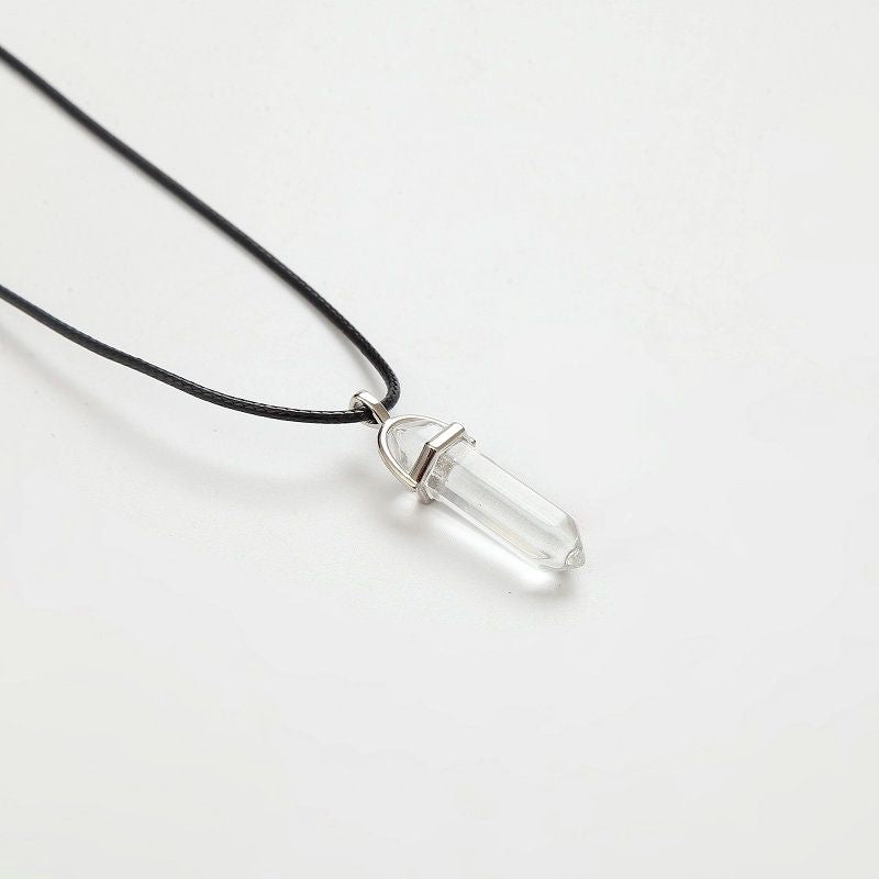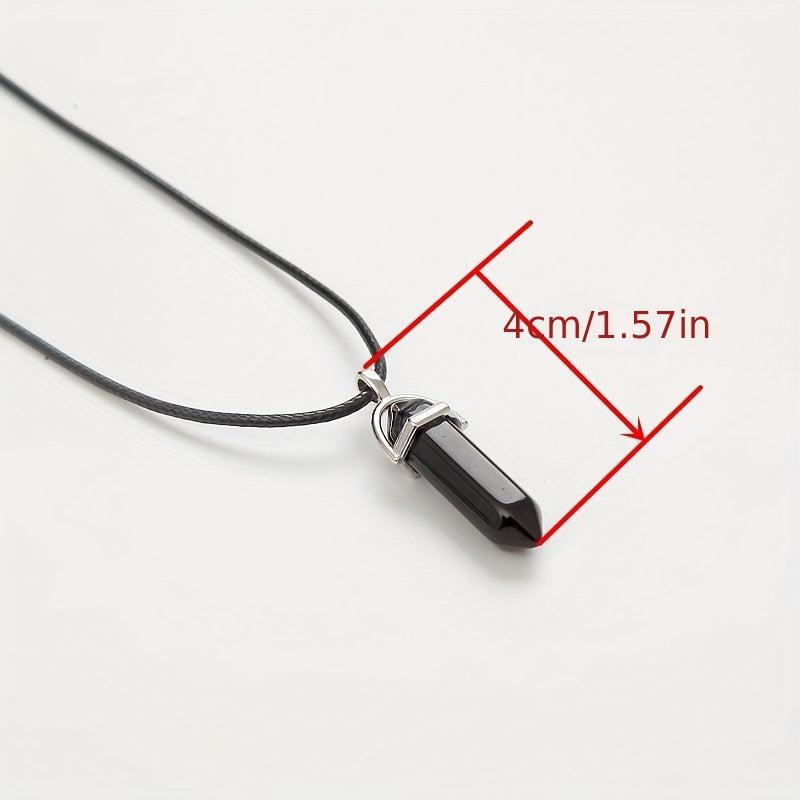 Natural Stone Pendant Hexagonal Column Leather Rope Necklace