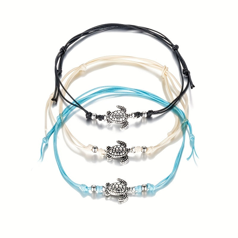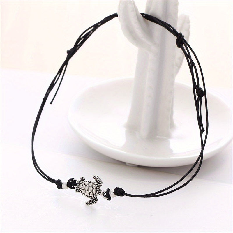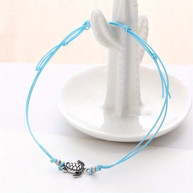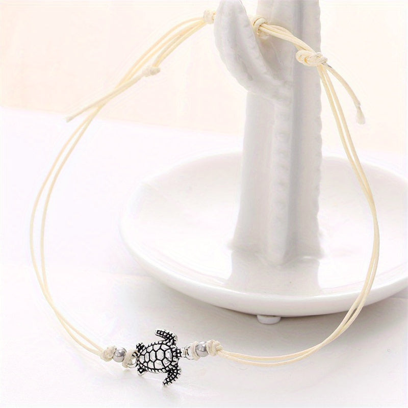 This waterproof wax thread ankle bracelet features turtle shape beads, perfect for adding a touch of ocean style to your look.