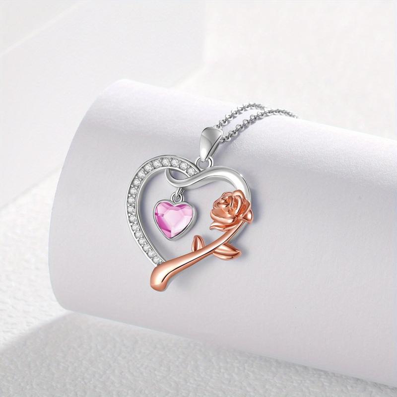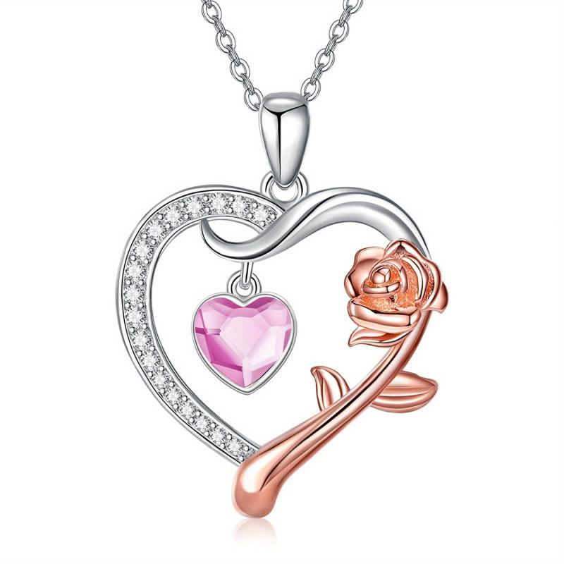 Elegant silvery 925 necklace with rose gold heart pendant featuring October birthstone. Perfect gift for wife, Valentine, or mother.