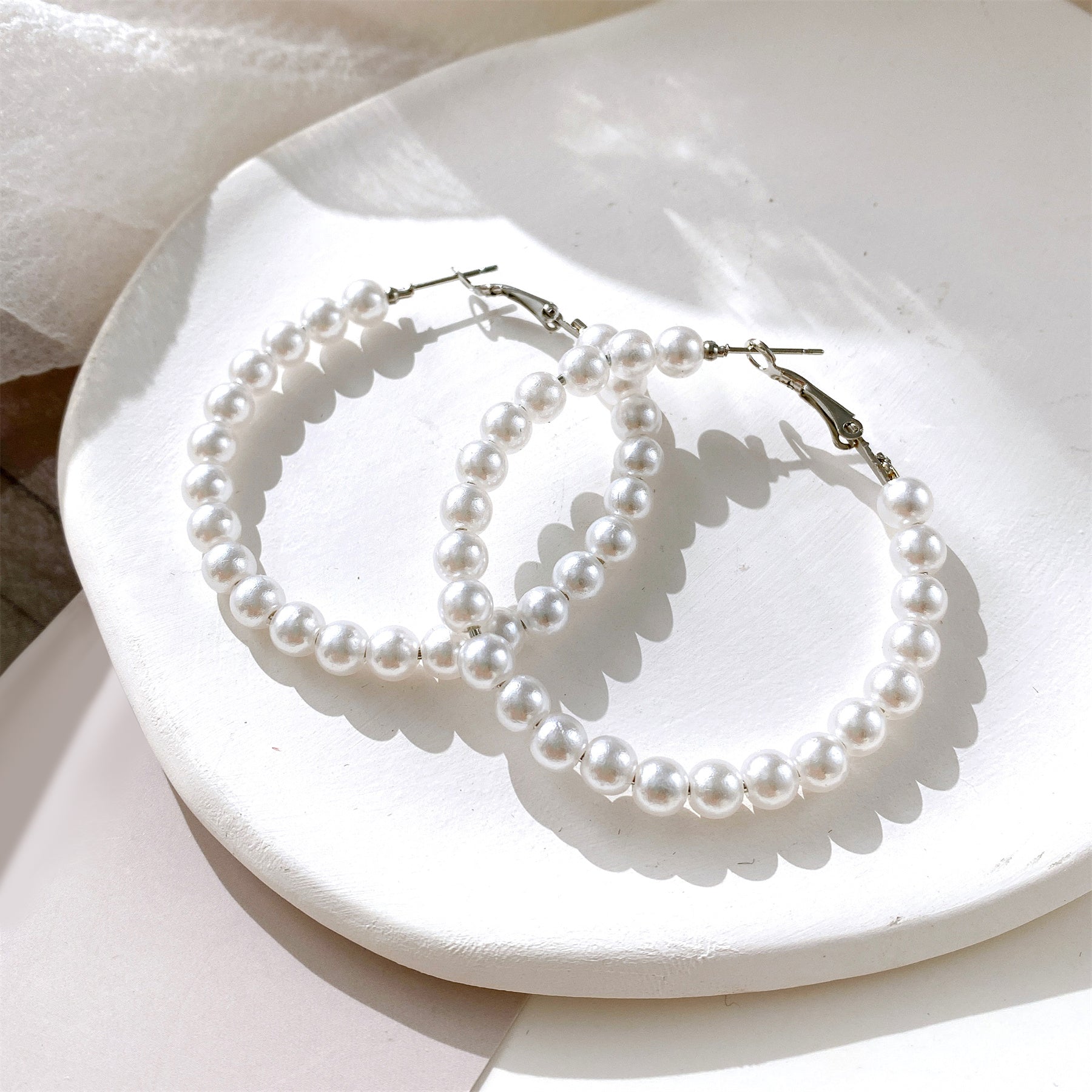 These stunning pearl hoop earrings are the perfect accessory for any outfit. They add a touch of elegance and sophistication to your look.