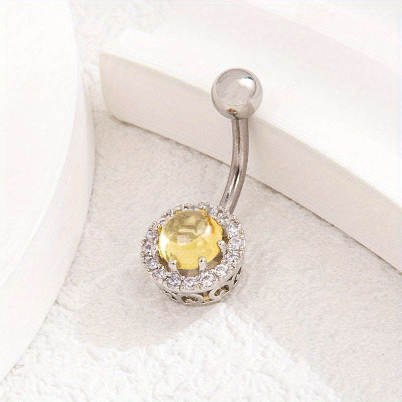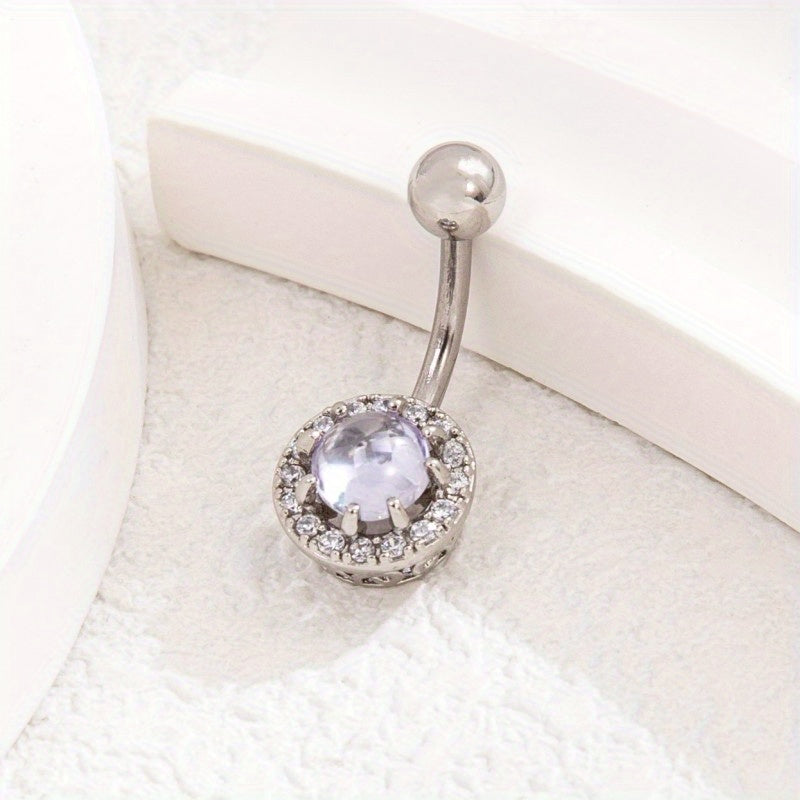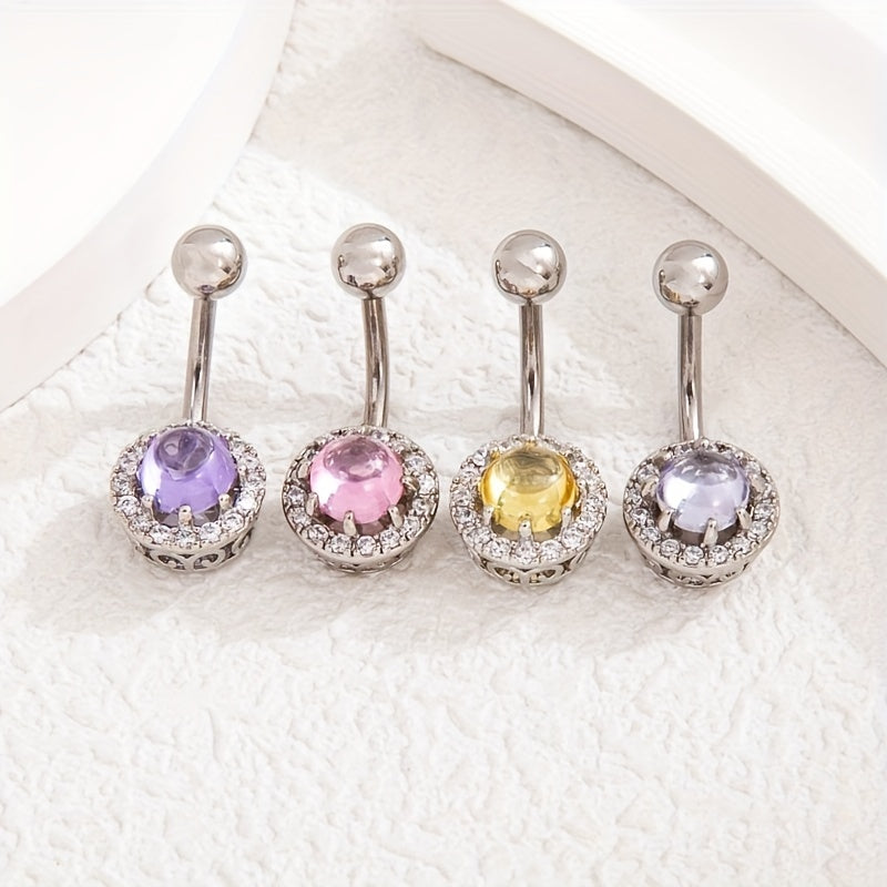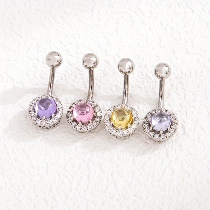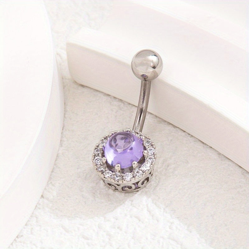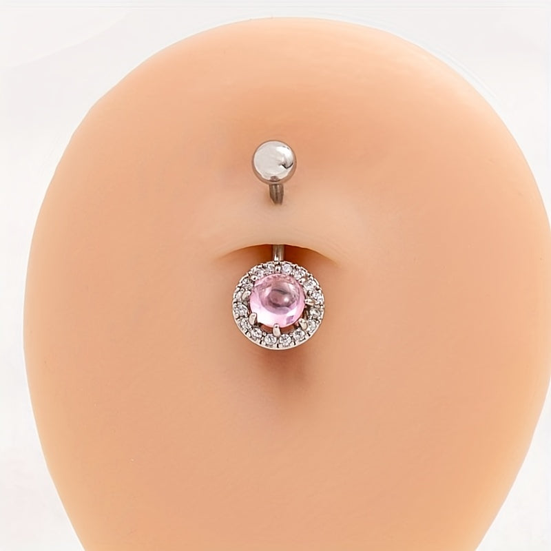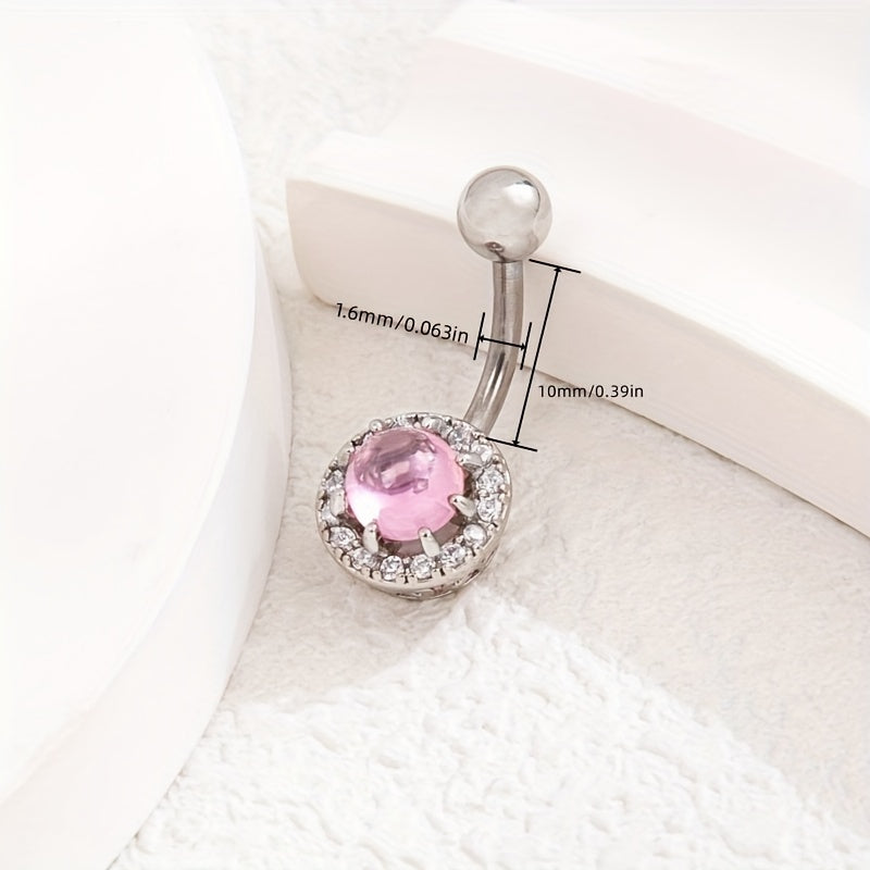 Add a touch of glam with this belly button ring featuring a pink zircon inlaid design. Perfect for body piercing enthusiasts.