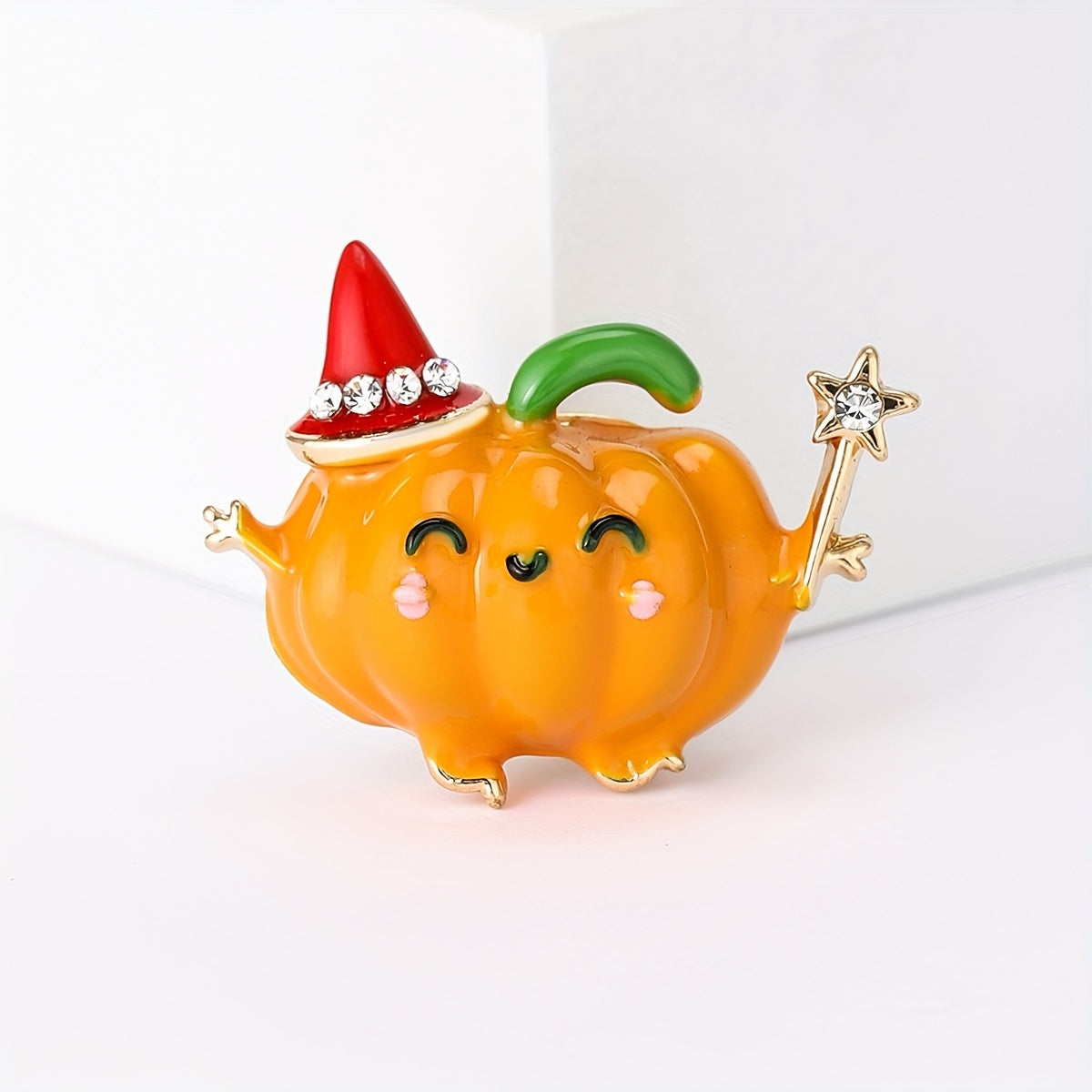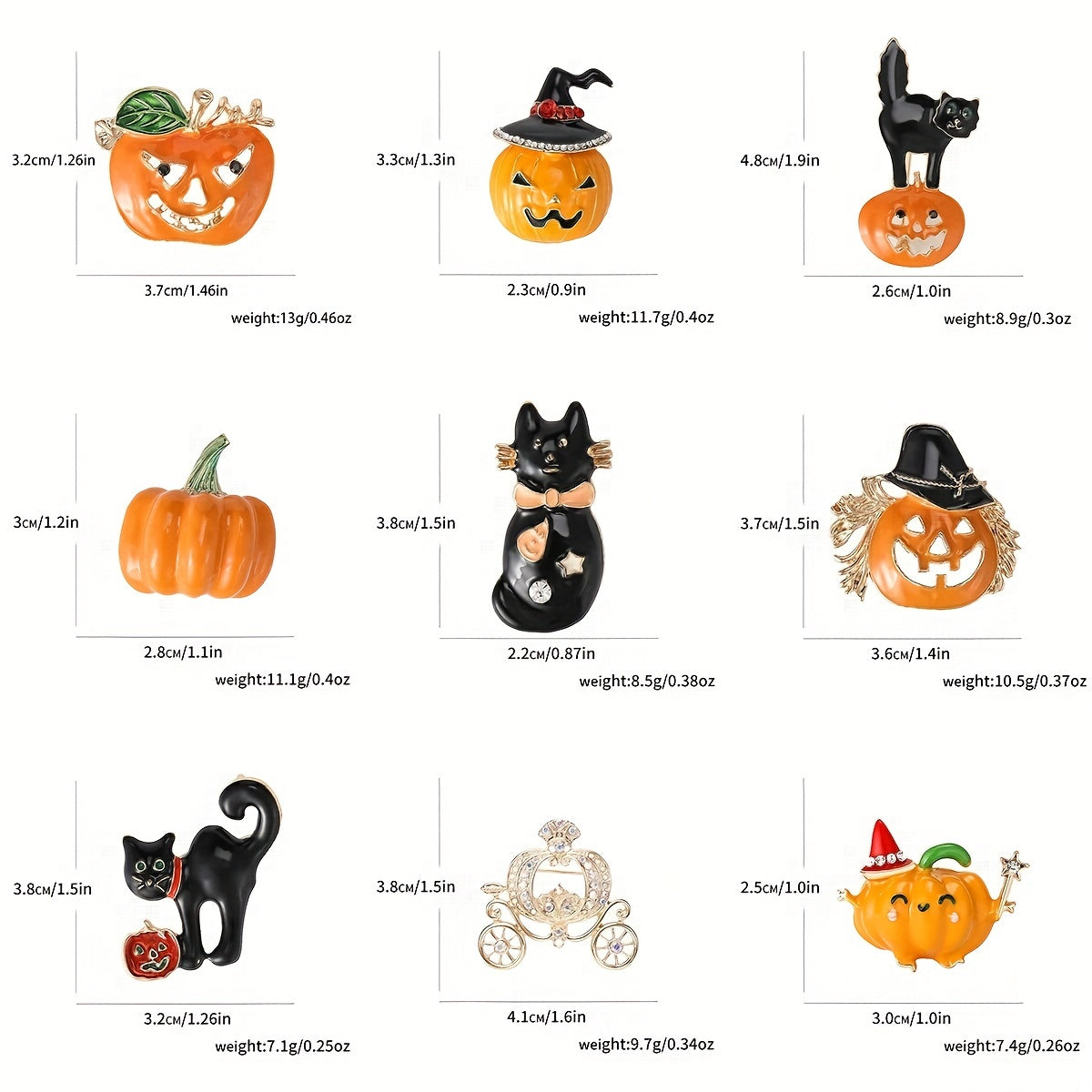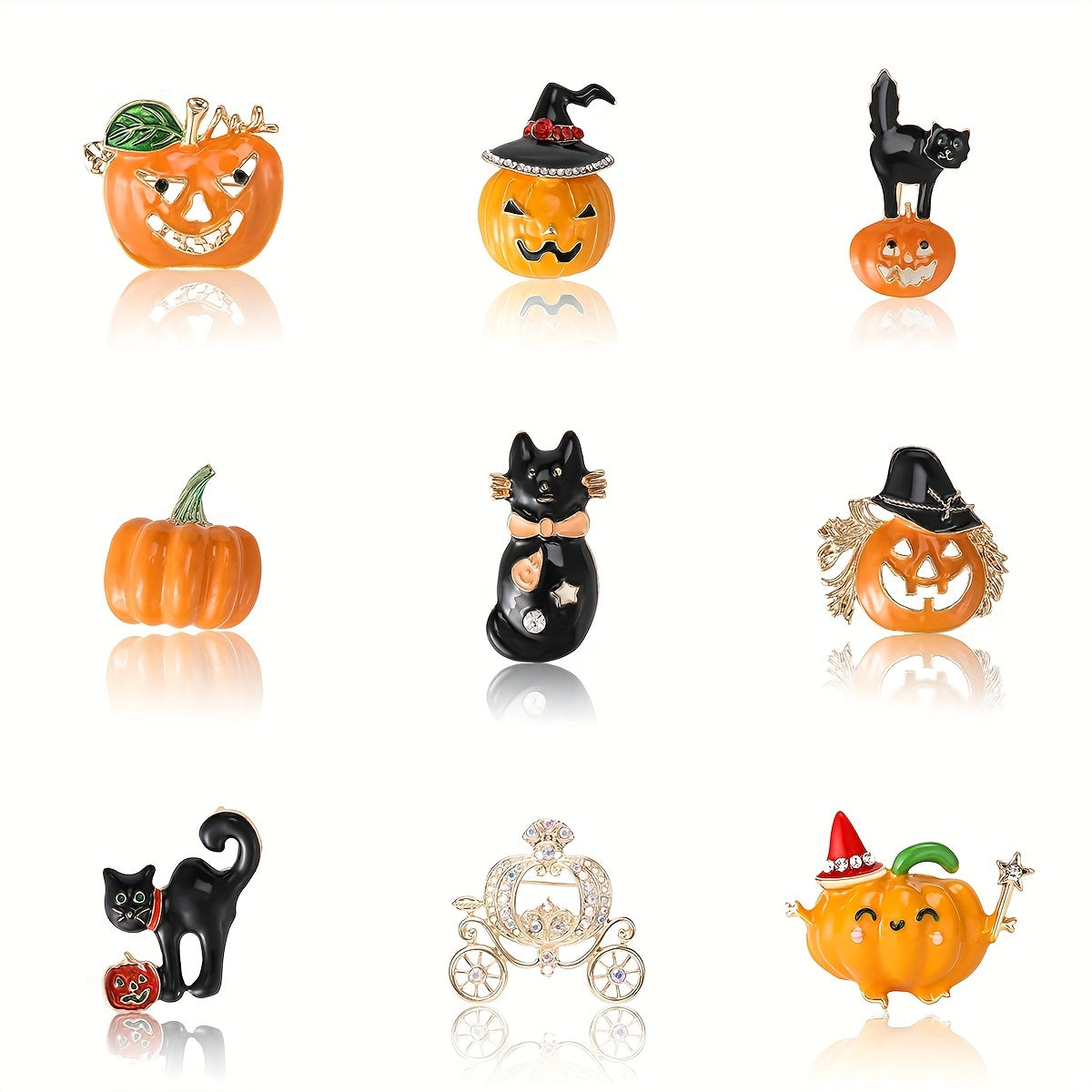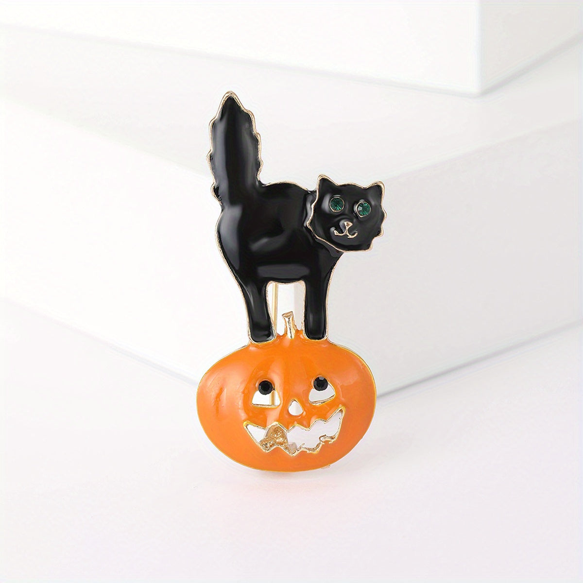 Add a spooky touch to your Halloween outfit with this pumpkin cat shape brooch pin. It features a unique design with dropping oil that adds a shimmering effect. Perfect for Halloween decoration or as a fun accessory.