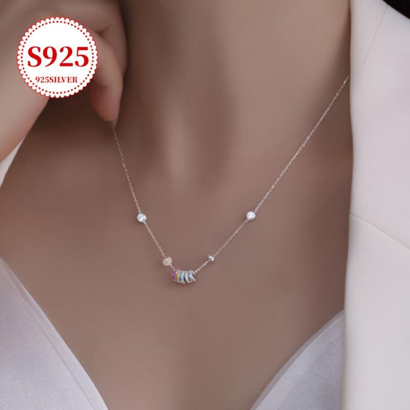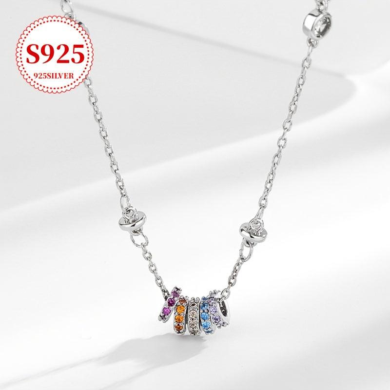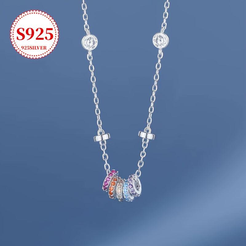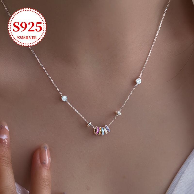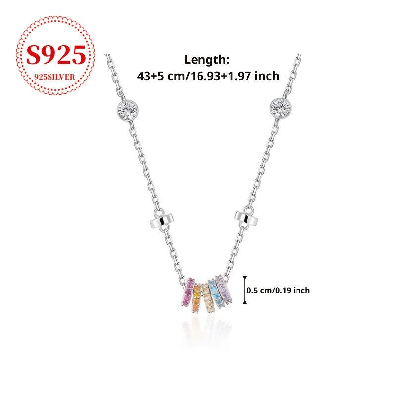 This unique necklace features rainbow colored circles on a slim chain, perfect for adding a pop of color to any outfit. Ideal for those with allergies.