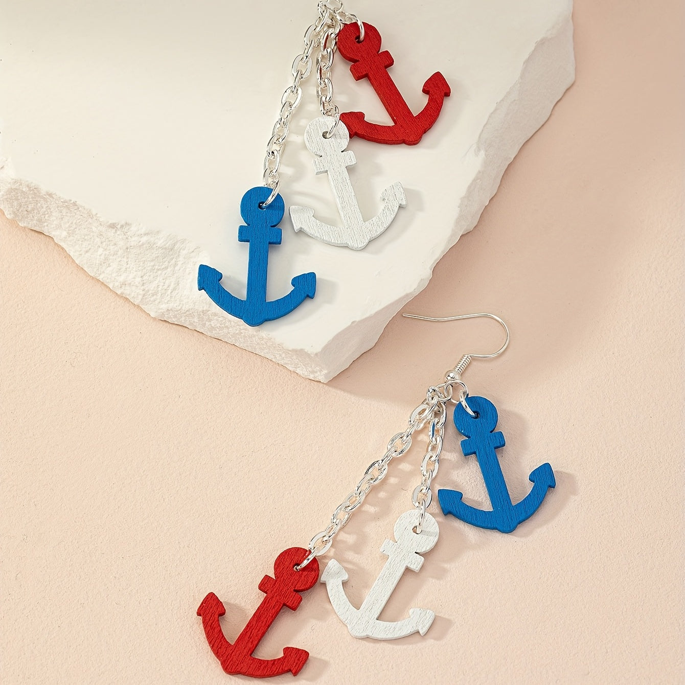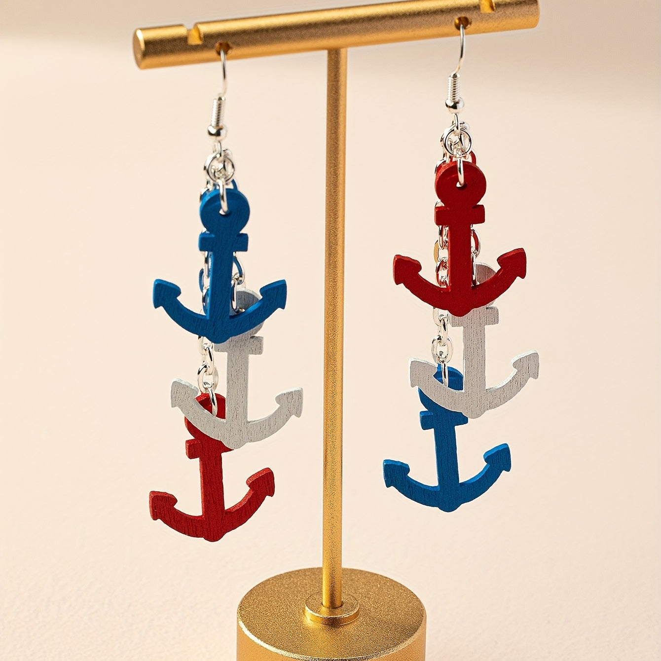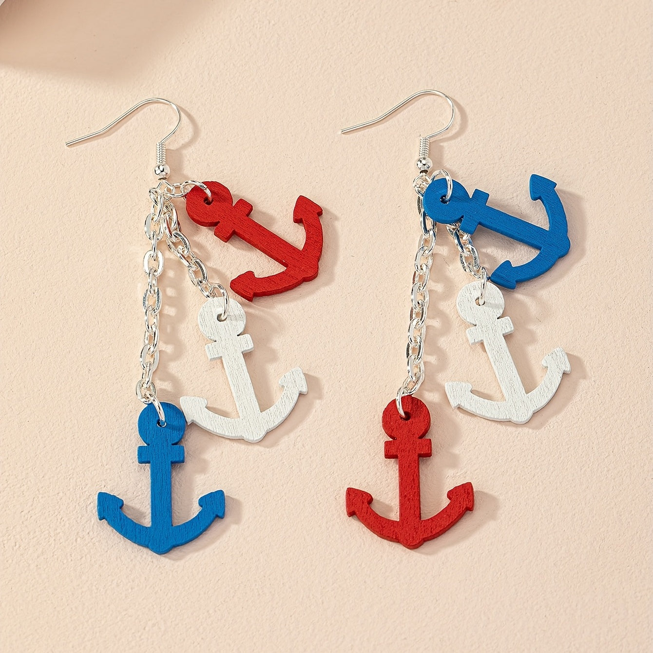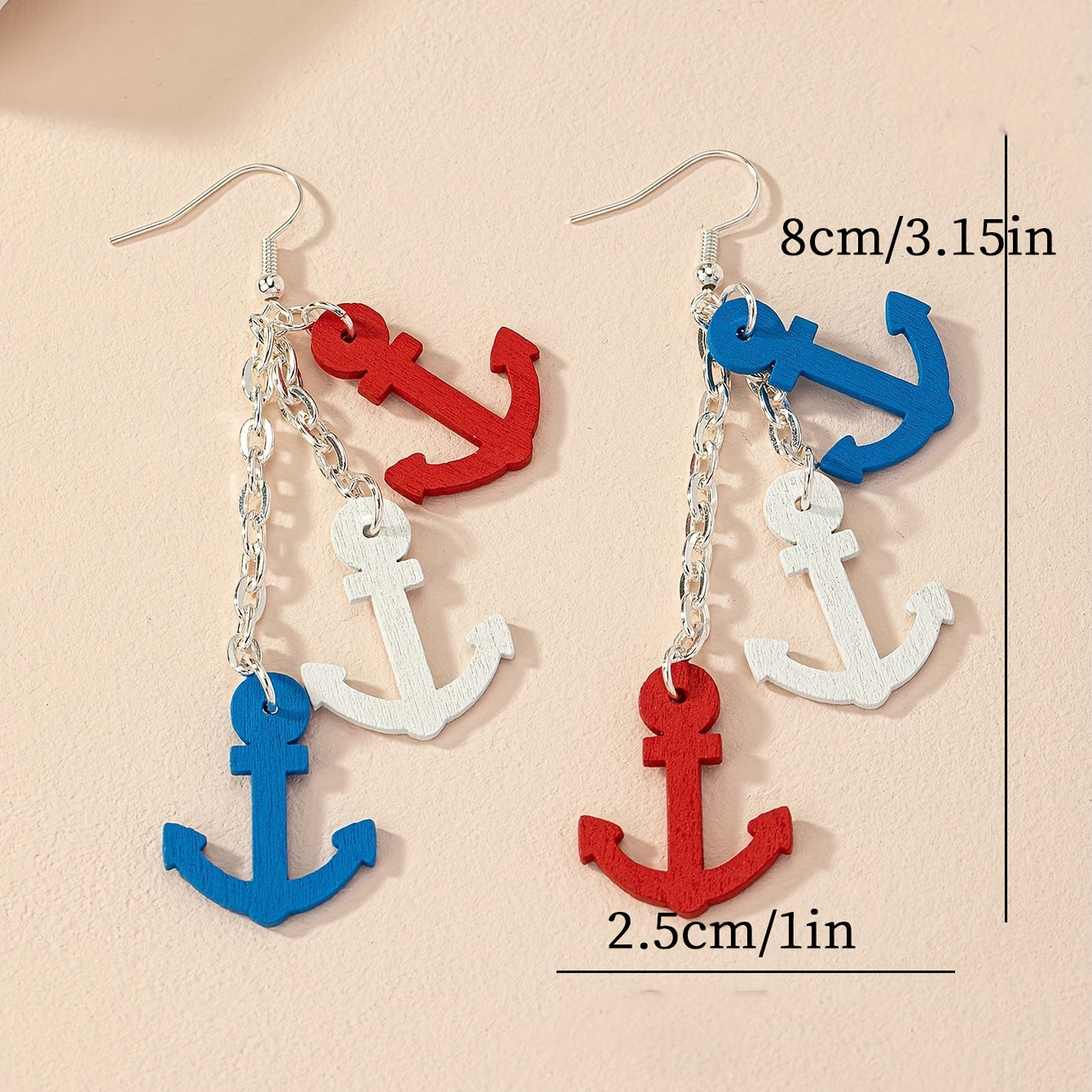 Add a bohemian touch to your outfit with these unique red boat anchor dangle earrings. Made of iron, these creative earrings make a great gift for any fashion-forward woman.