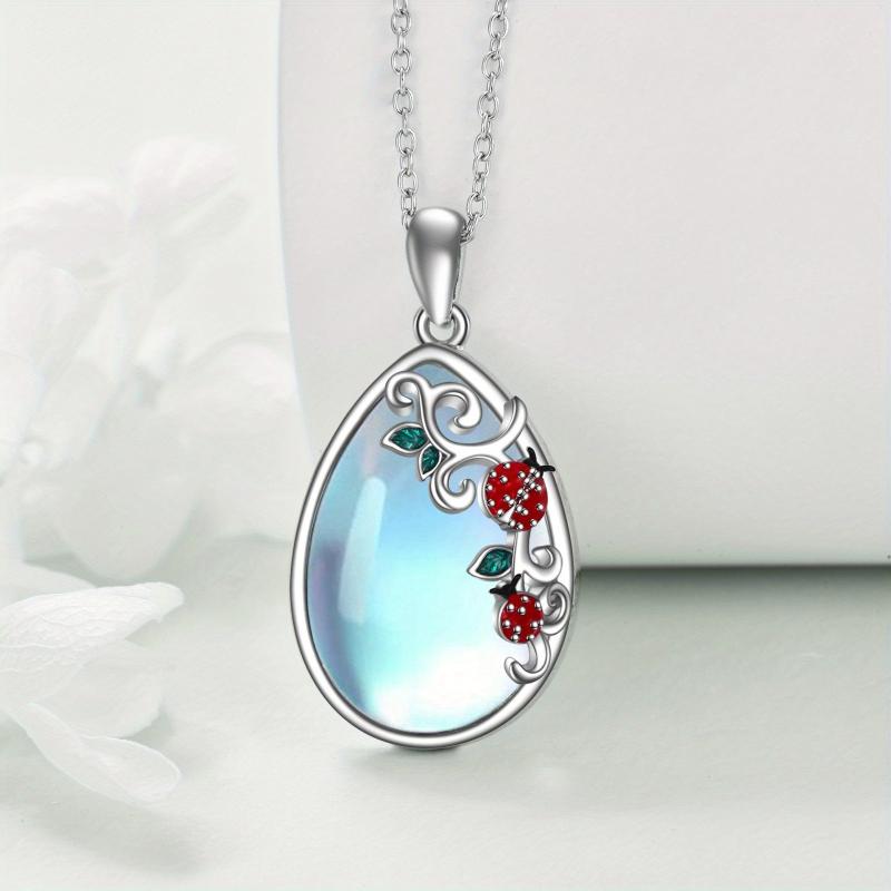 This exquisite necklace is a perfect gift for mothers on Christmas, birthdays, or any occasion. Crafted with red ladybug and moonstone, it symbolizes the bond between mother and daughter.