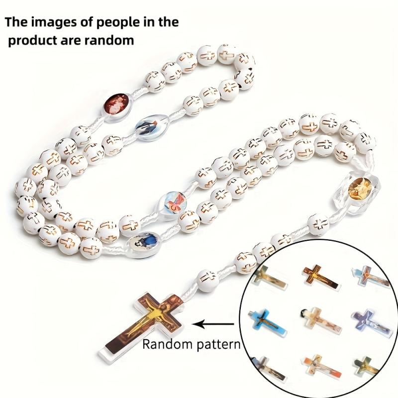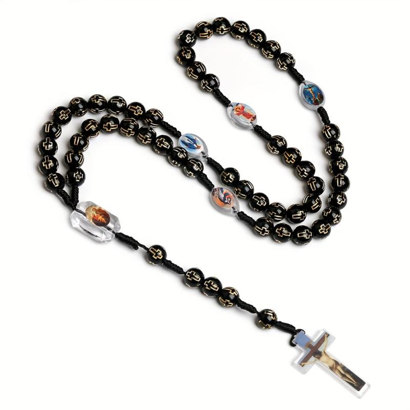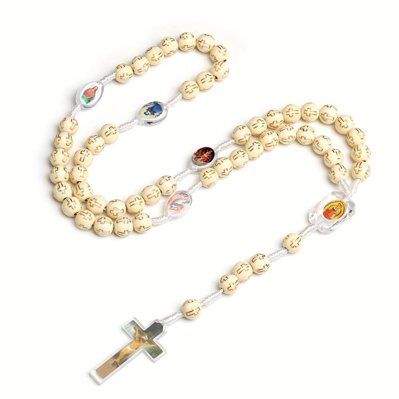 This beautiful prayer beads are made of high-quality resin and feature a cross pendant and saint charms. Perfect for prayer and meditation.